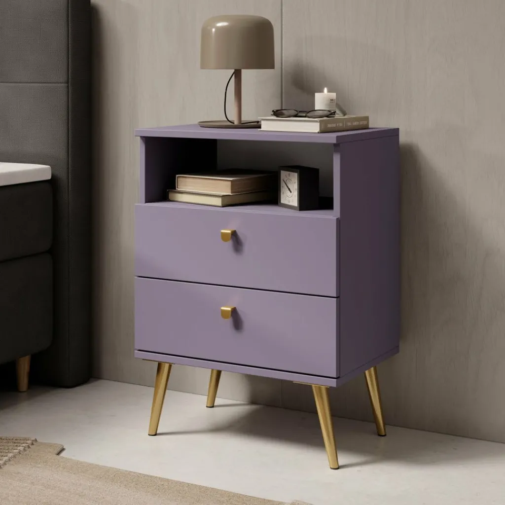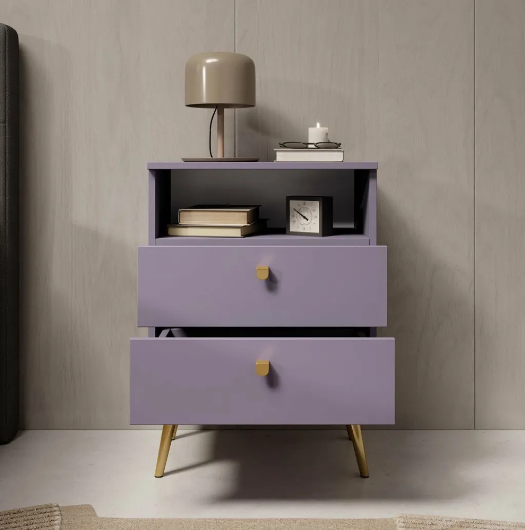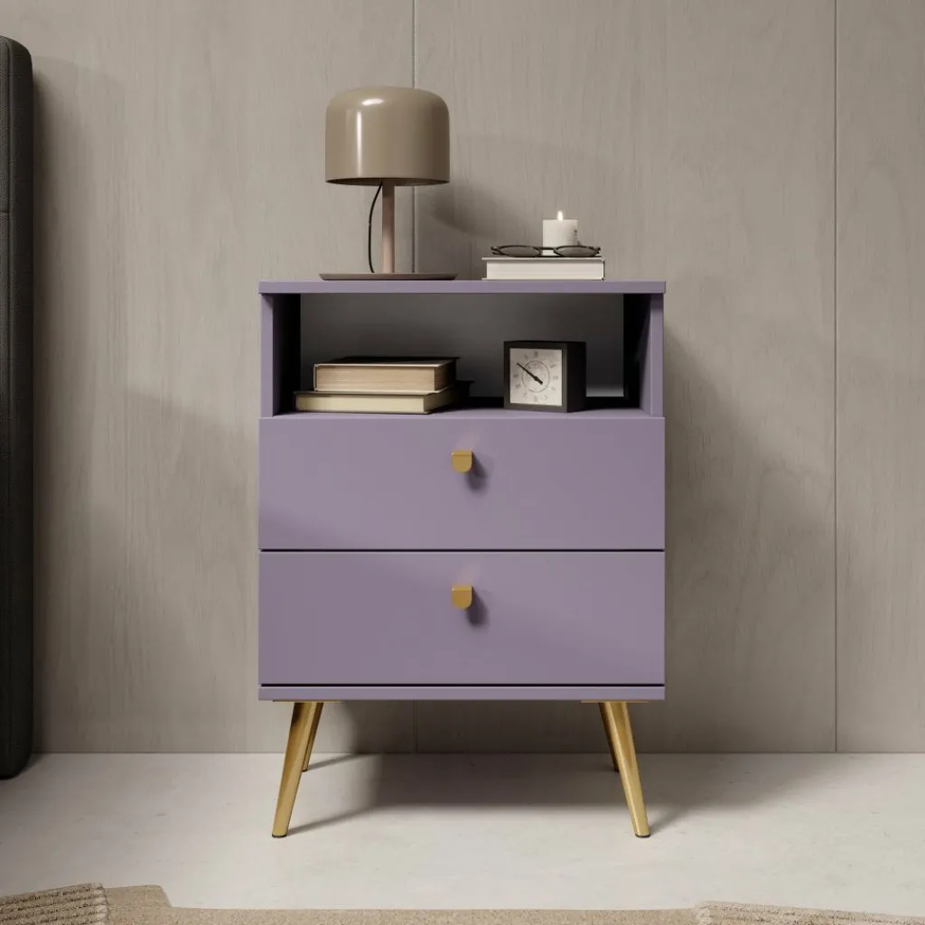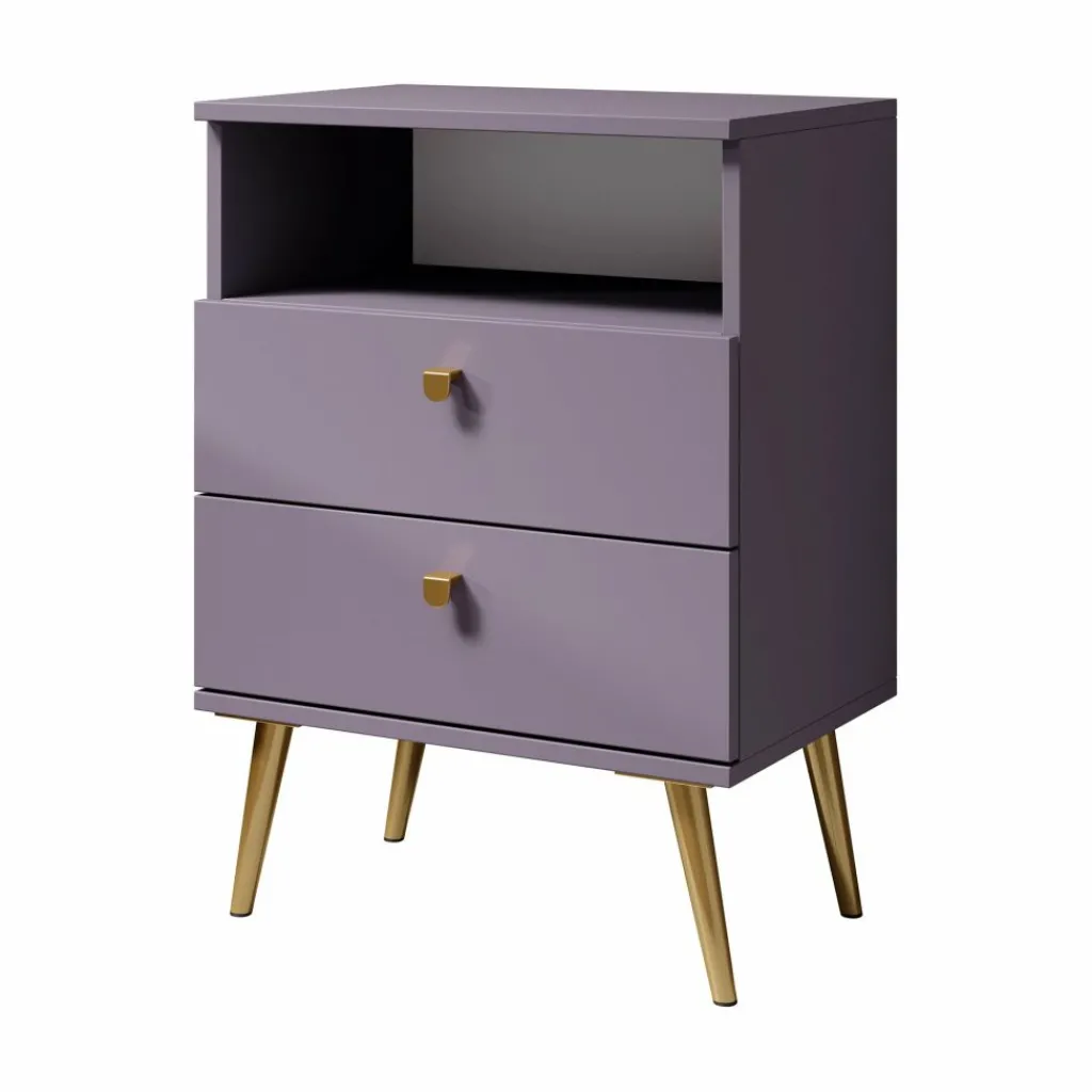 Nachtkastje Hidde is een praktisch opbergkastje voor naast het bed met een moderne en stijlvolle uitstraling. De paarse kleur geeft het meubel een eigentijds karakter en zorgt voor een subtiele blikvanger in de slaapkamer.