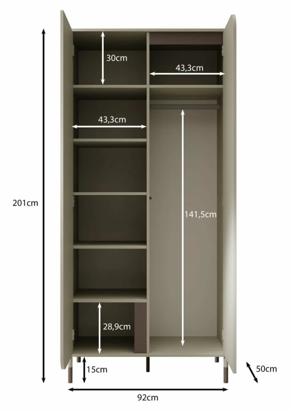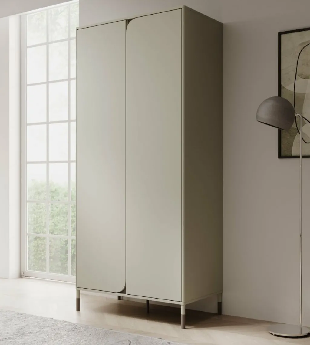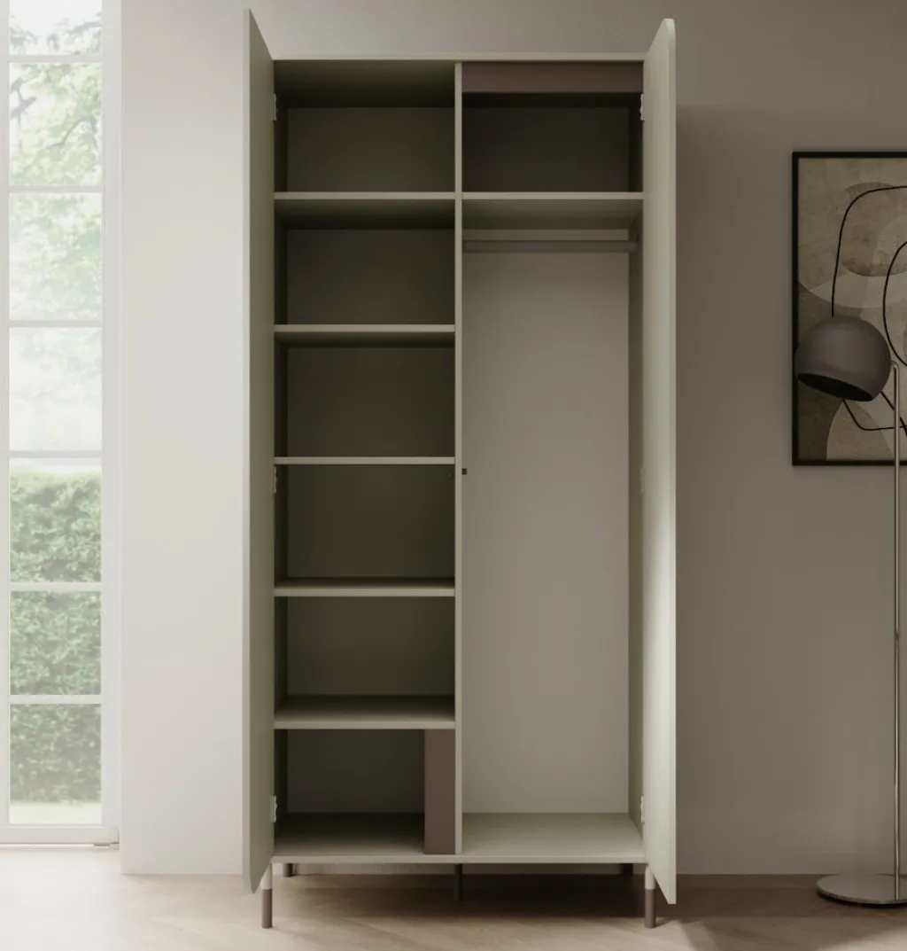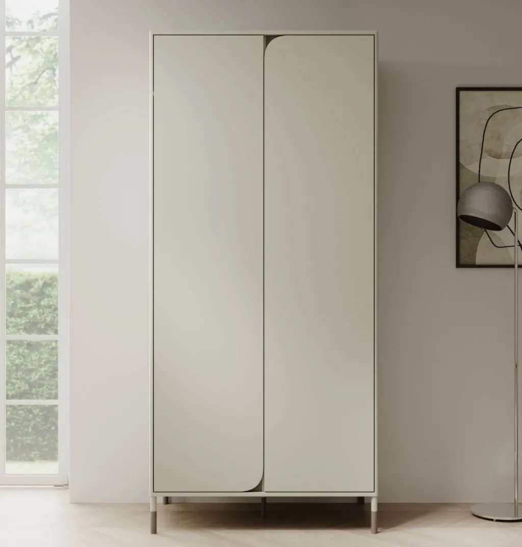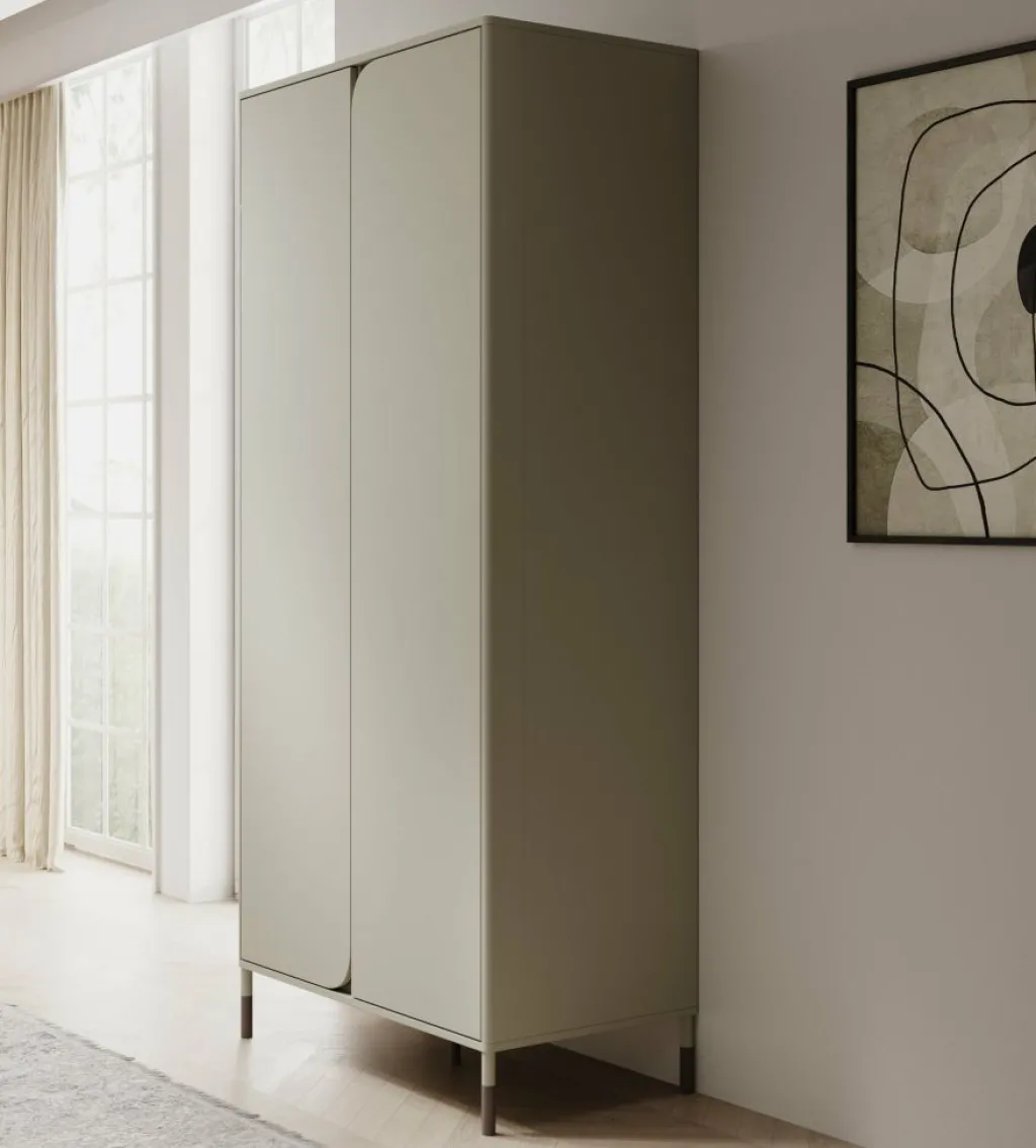 Kinderkledingkast Hill is een garderobekast uitgevoerd in de kleur beige. De kast beschikt over 2 scharnierdeuren die openen met het push to open systeem. De binnenkant van de kast bestaat uit 1 kledingroede en 7 opbergvakken. Dit meubel past perfect in kinderkamers met een moderne stijl.