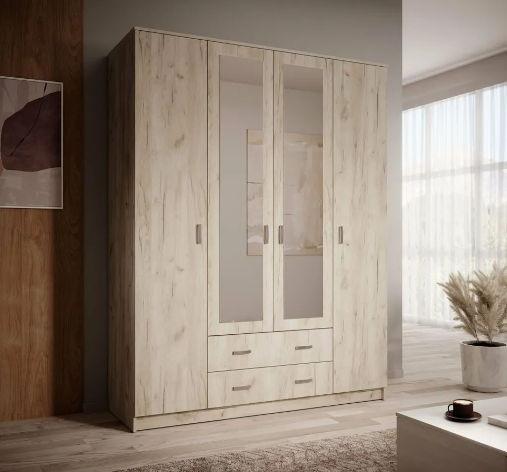 De Hinto is uitgevoerd met een grijs eiken kleurige lamineer laag. Hierdoor krijgt de kast de uitstraling van echt hout.