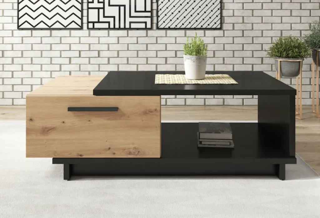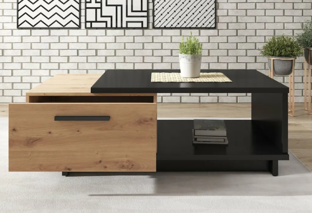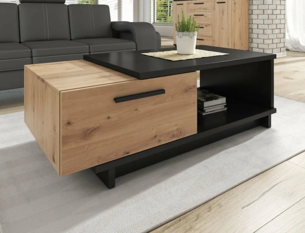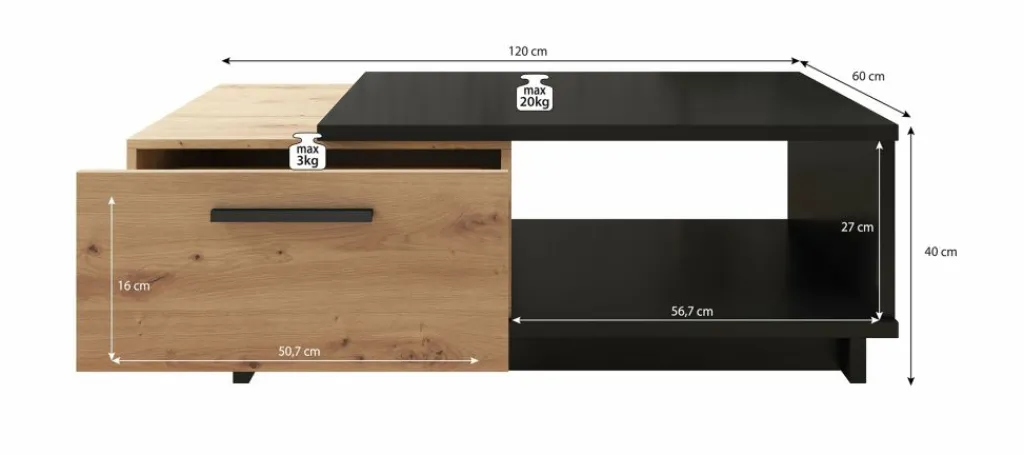 Salontafel Incala is een praktisch vormgegeven tafel met handige opbergruimte. De Ivano beschikt over een twee opberglades onder het bovenblad: handig om je afstandsbedieningen en accessoires op te bergen. Het gehele meubel is uitgevoerd in een mat zwarte kleur met eiken, en uitstekend te combineren met andere meubels uit het woonprogramma Incala. Door het design en kleurgebruik is dit meubel geschikt voor zowel moderne als industriele interieurs.