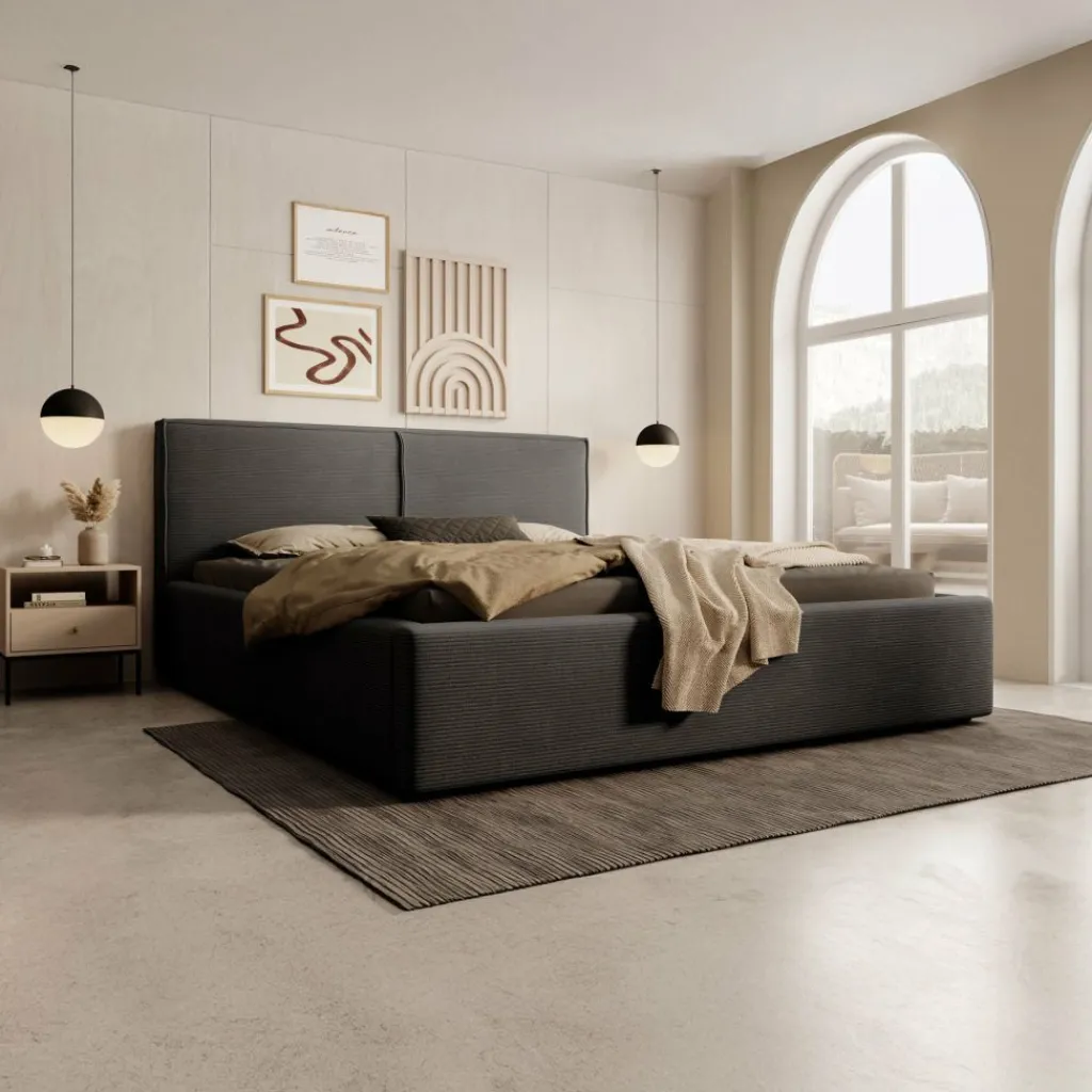 Tweepersoonsbed Infinity beschikt over een groot hoofdbord met een speelse stiknaad. Het bed is eenvoudig te monteren. Wordt met lattenbodem geleverd, dus je hoeft alleen nog maar een matras aan te schaffen.