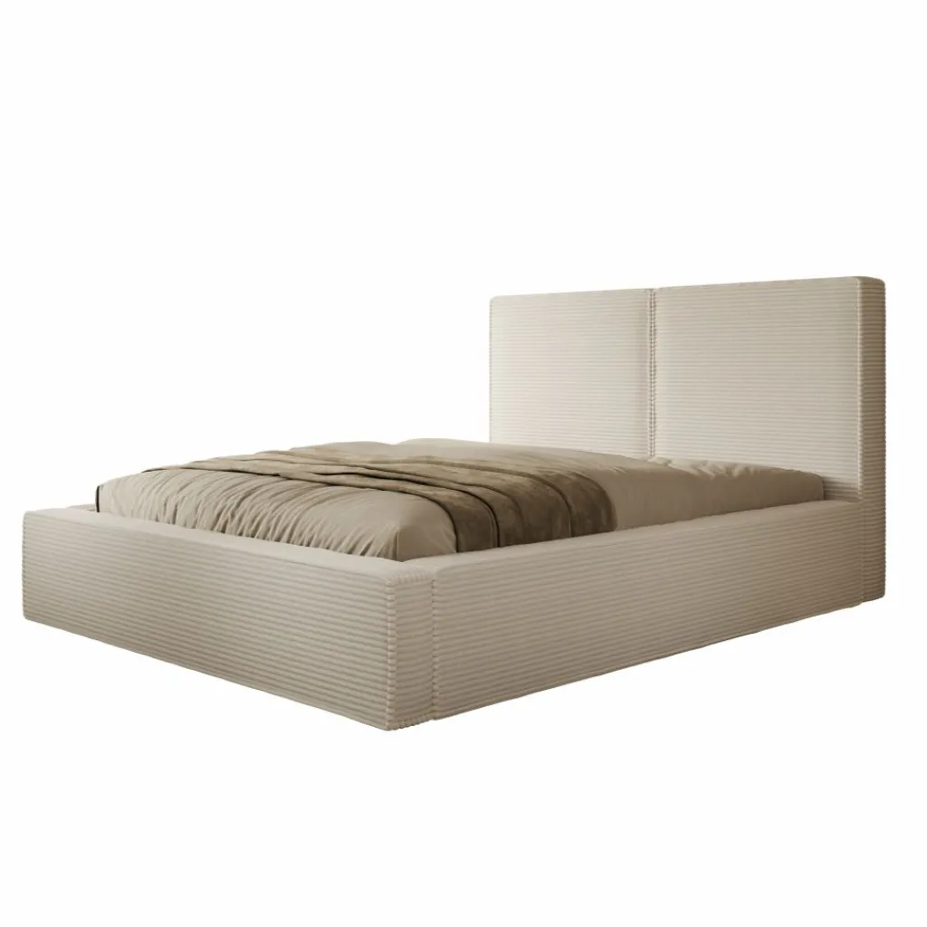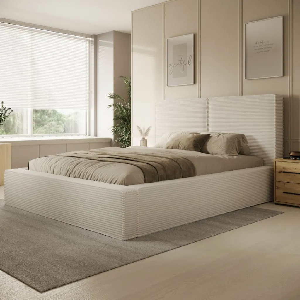 Het Jarviz bed in beige ribstof biedt een combinatie van stijl, comfort en functionaliteit. De zachte ribstofbekleding zorgt voor een warme, uitnodigende uitstraling, terwijl het strakke ontwerp rust en een gevoel van ruimte brengt in de slaapkamer.