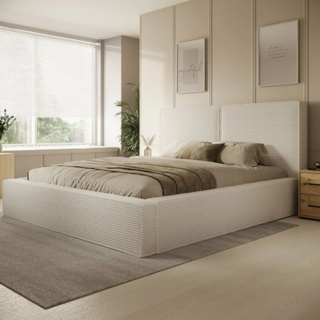 Breng warmte en elegantie in je slaapkamer met het Jarviz tweepersoonsbed in beige ribstof. Dit ruime bed combineert modern design met de zachte uitstraling van ribstof, waardoor een stijlvol en comfortabel geheel ontstaat.