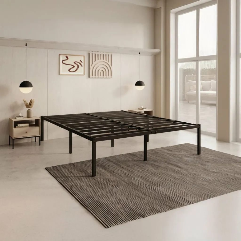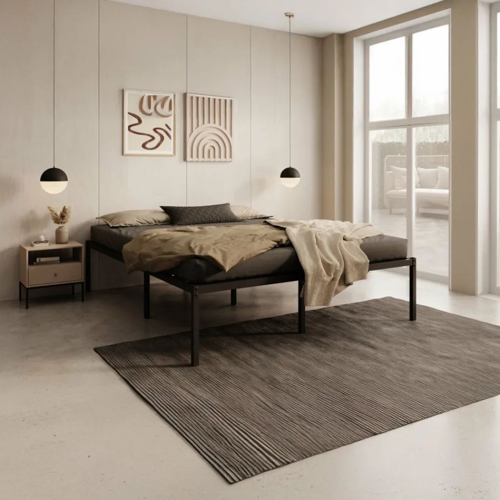 Tweepersoonsbed Justin is een bed in de kleur zwart, geschikt voor matrasmaat 160×200 cm. Het bed is een eenvoudig design en is gemaakt van een metalen constructie. Je hoeft enkel nog een matras en kussens erop te leggen en het is klaar voor gebruik.