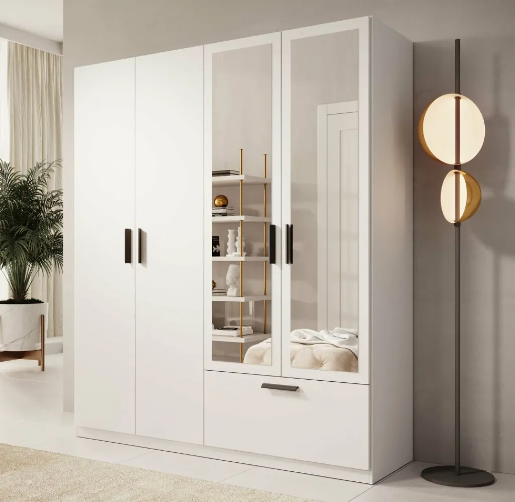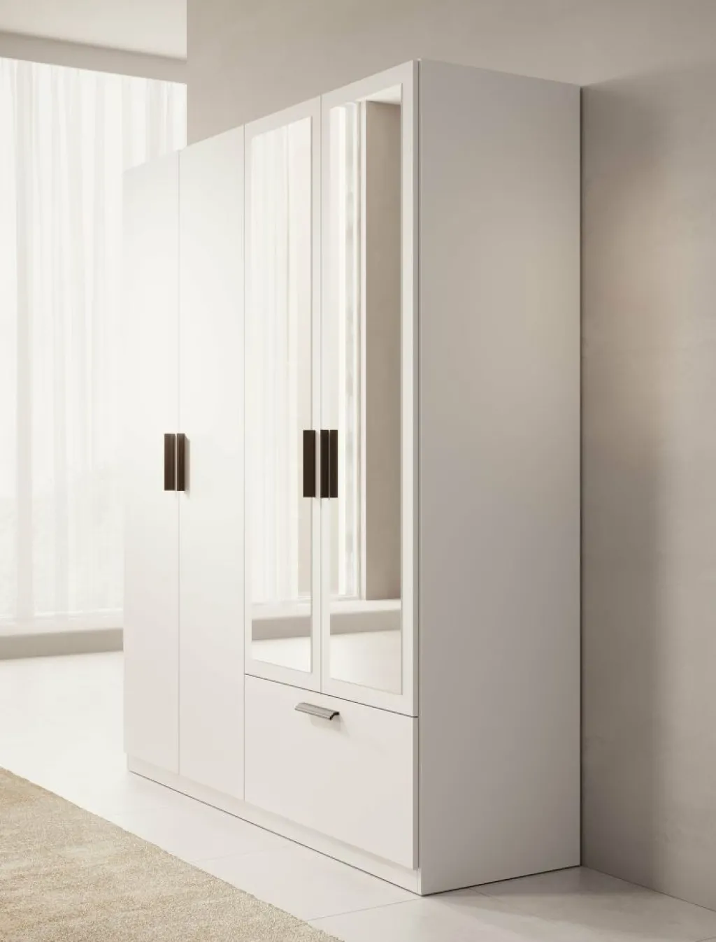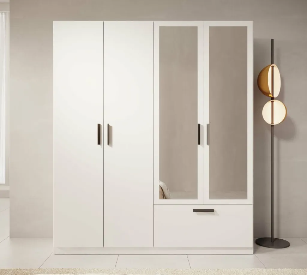 Tijdens het monteren kan je zelf kiezen of je de lade met spiegeldeuren aan de linker- of rechterkant plaatst.