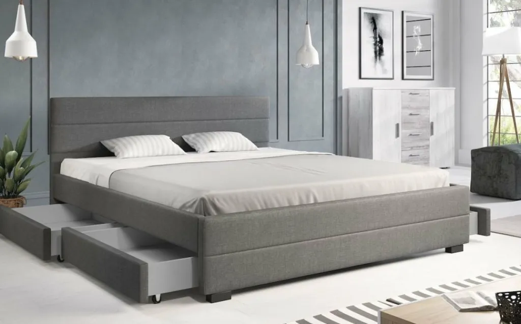 Tweepersoonsbed Loox is een praktisch, modern bed en een echte eyecatcher. Dit model is afgewerkt met onderhoudsvriendelijke stof in de kleur grijs. Het bed beschikt over een stevige constructie inclusief hoofdbord, voetbord en zijpanelen en staat op pootjes van 4,5 cm hoog. Bij de prijs is ook een standaard lattenbodem inbegrepen. Een matras wordt niet bijgeleverd. Het bed is ontzettend praktisch aangezien er in totaal vier lades met wieltjes in geplaatst zijn: twee aan iedere zijkant. Tweepersoonsbed Loox heeft een draagvermogen van 100 kg per ligzijde.