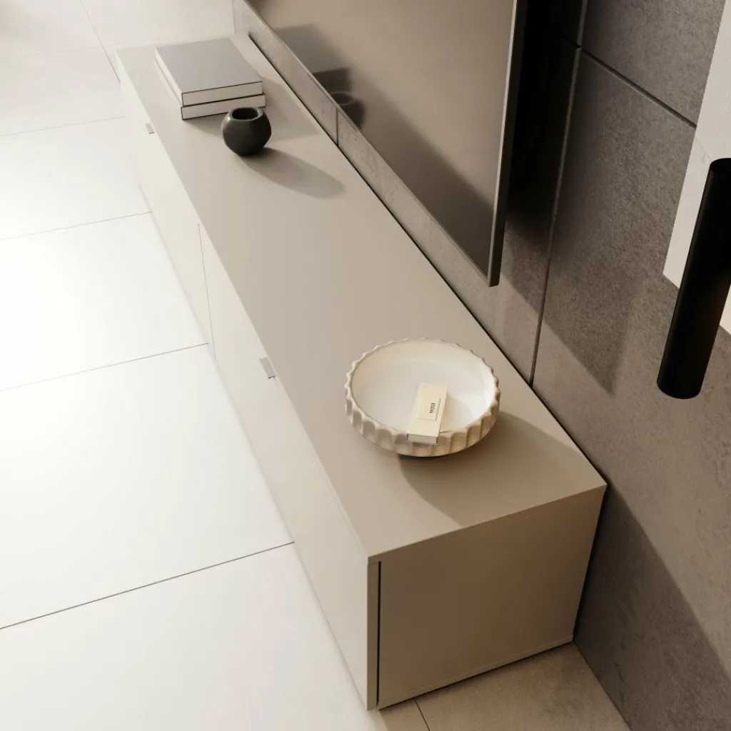 De beige afwerking geeft het tv-meubel een neutrale en rustige uitstraling die eenvoudig te combineren is met verschillende interieurstijlen. Lornes is een functioneel en strak vormgegeven tv-meubel met een overzichtelijke indeling voor dagelijks gebruik.