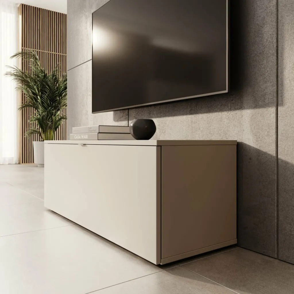 De beige afwerking zorgt voor een neutrale en rustige uitstraling die eenvoudig te combineren is met verschillende interieurstijlen. Lornes is een praktisch tv-meubel met een strakke vormgeving en een overzichtelijke indeling voor dagelijks gebruik.