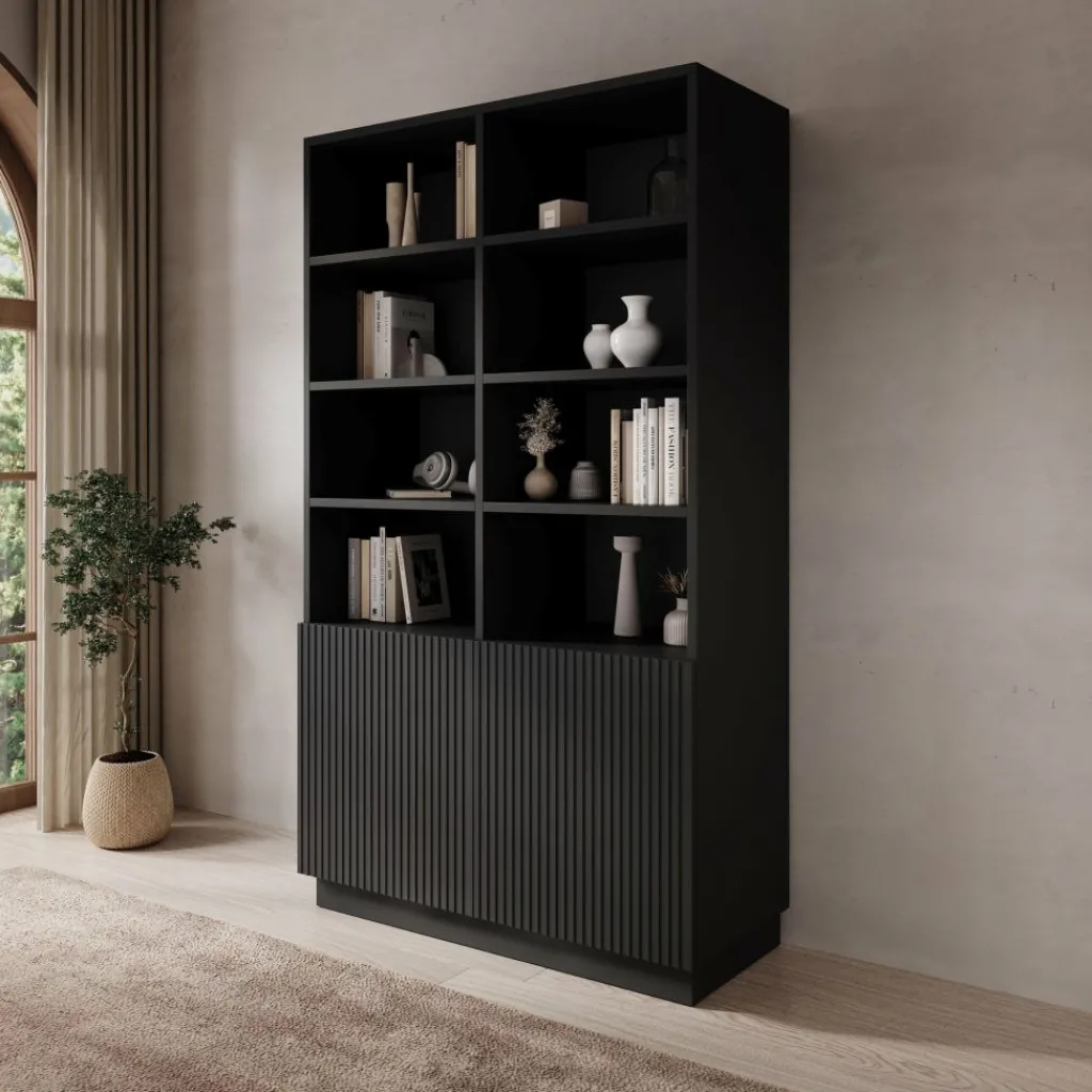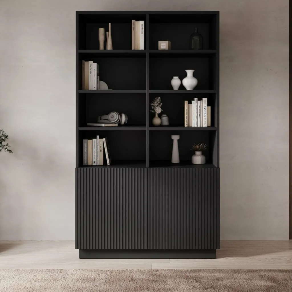 De fronten met verticale lijnen geven het meubel een herkenbare uitstraling binnen de Lucera serie. De frontjes kunnen naar eigen keuze gemonteerd worden, zodat je zelf bepaalt aan welke zijde de geribbelde fronten komen. Zo kun je het meubel aanpassen aan de indeling van je woonkamer.
