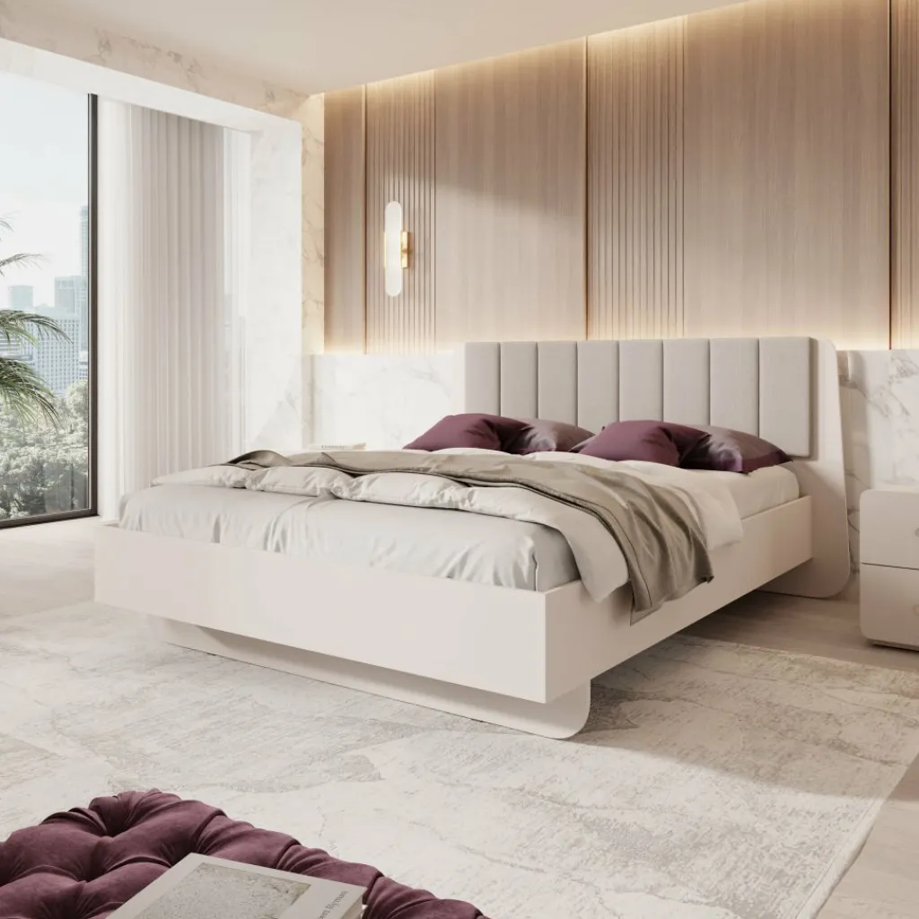 Het Luzon tweepersoonsbed in beige heeft een strak ontwerp met een gestoffeerd hoofdbord dat extra steun biedt wanneer je rechtop in bed zit. Het bed heeft een ligoppervlak van 160×200 cm en biedt voldoende ruimte voor twee personen.