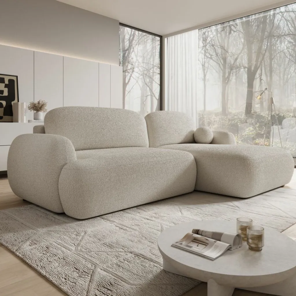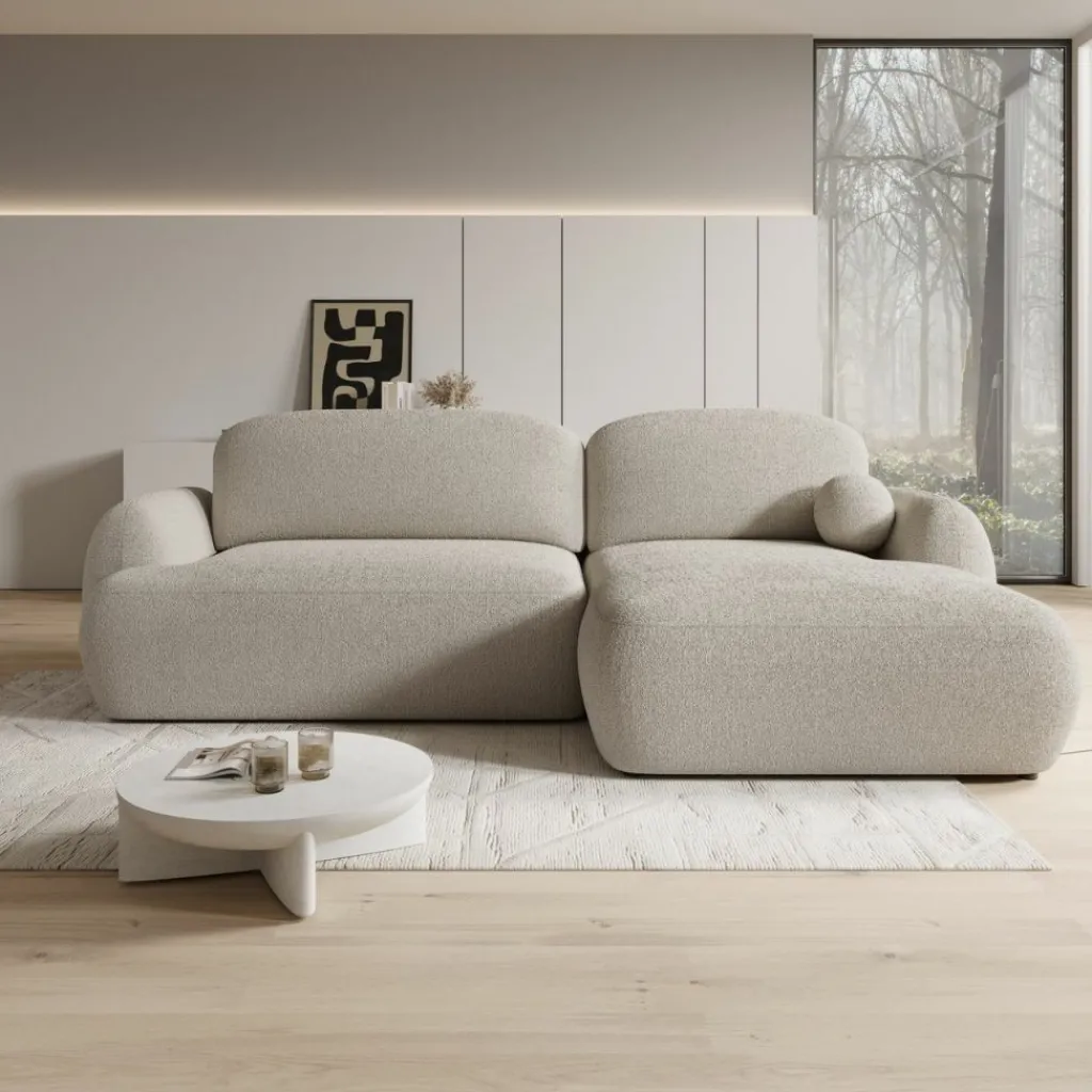 Zacht, rond en modern. Hoekbank Malaga is dé eyecatcher voor ieder interieur dat warmte en stijl wil combineren. De zachte teddystof (gemaakt van 100% gerecycled polyester) voelt zacht aan en is een duurzame keuze.