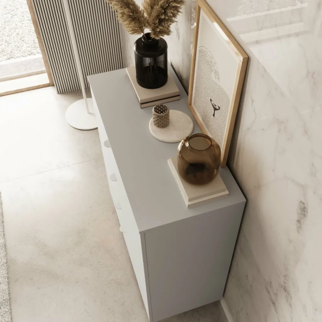 Dankzij het compacte formaat past de ladekast moeiteloos in verschillende kamers, zoals de slaapkamer, hal of woonkamer. Combineer deze kast met andere meubels uit de Malvare-serie voor een harmonieus geheel.
