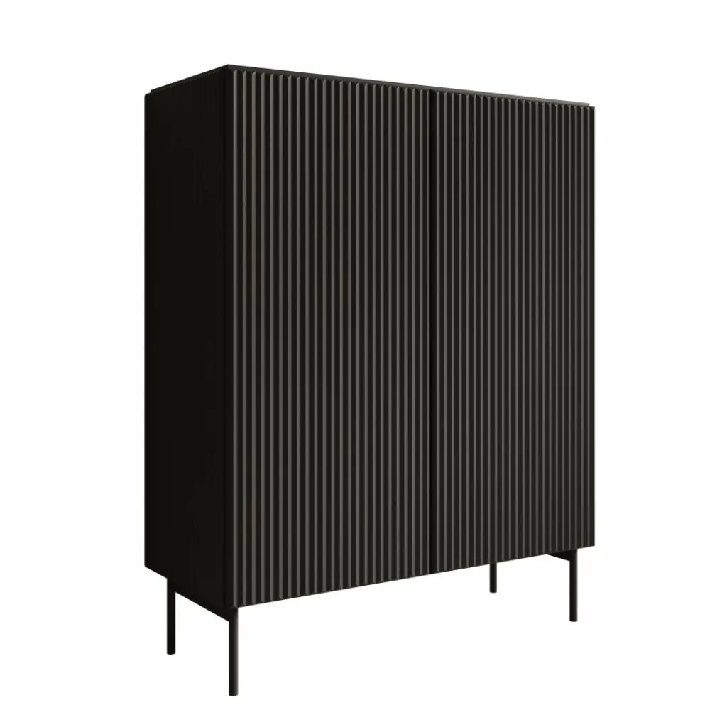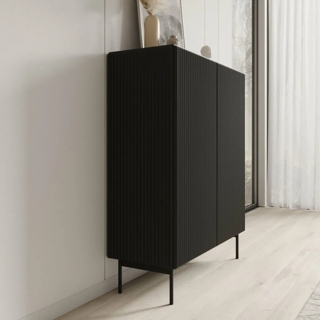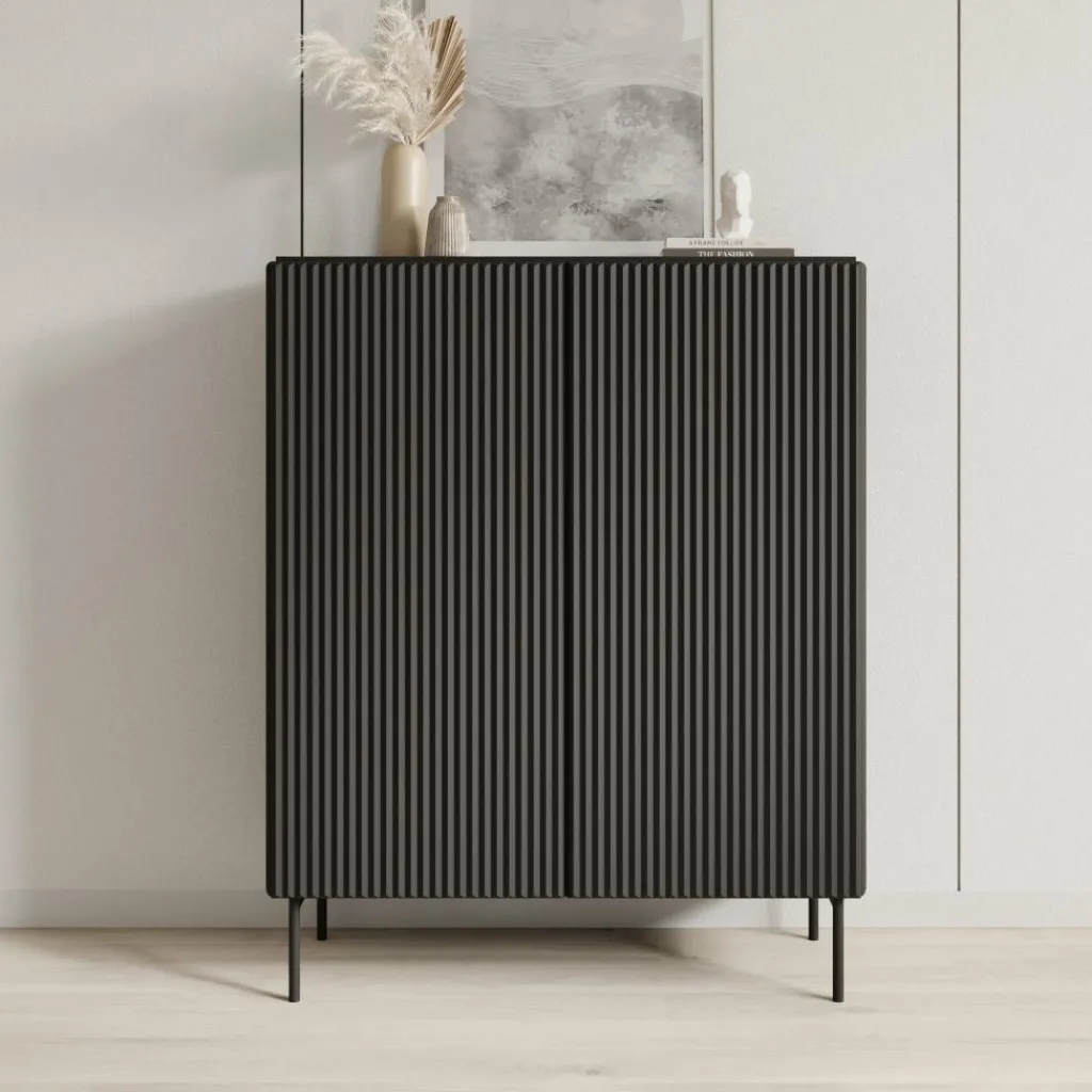 Het Marajo dressoir heeft een strak design met een opvallend front voorzien van verticale latstructuur. De zwarte afwerking geeft het meubel een rustige en moderne uitstraling die goed past in diverse interieurs.