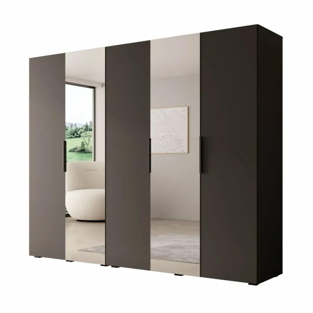 De zwarte uitvoering heeft een krachtige en moderne uitstraling. De kast vormt een stijlvolle blikvanger in de slaapkamer, zonder onrustig te ogen. De twee spiegeldeuren doorbreken het donkere geheel op een subtiele manier en voegen ruimtelijkheid toe. De zwarte handgrepen lopen mooi door in het totale ontwerp en geven de kast een strakke afwerking.