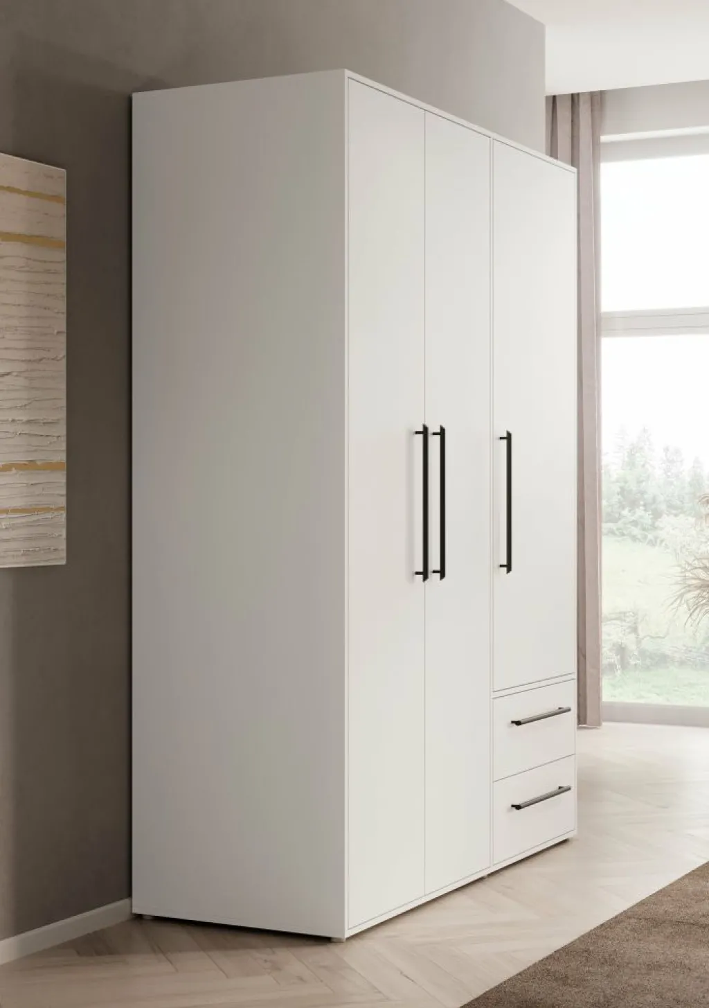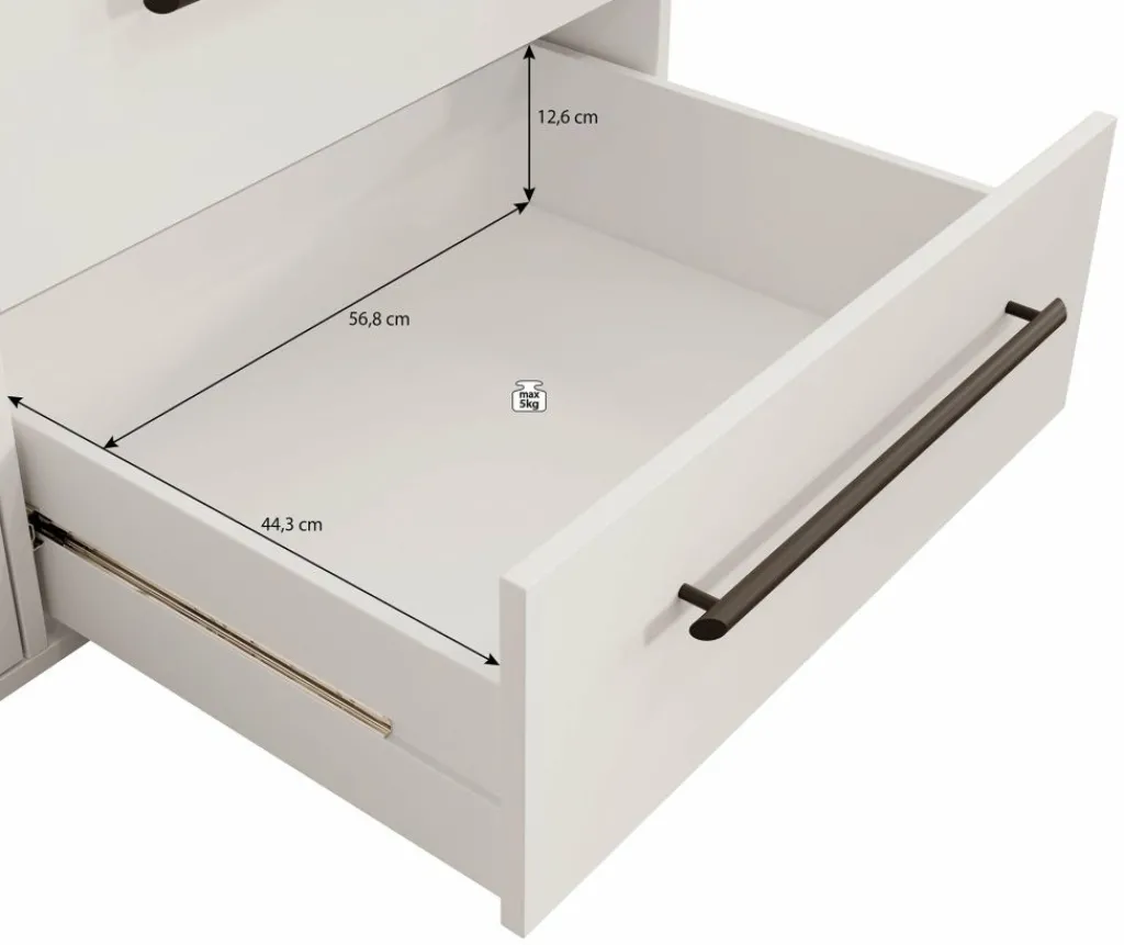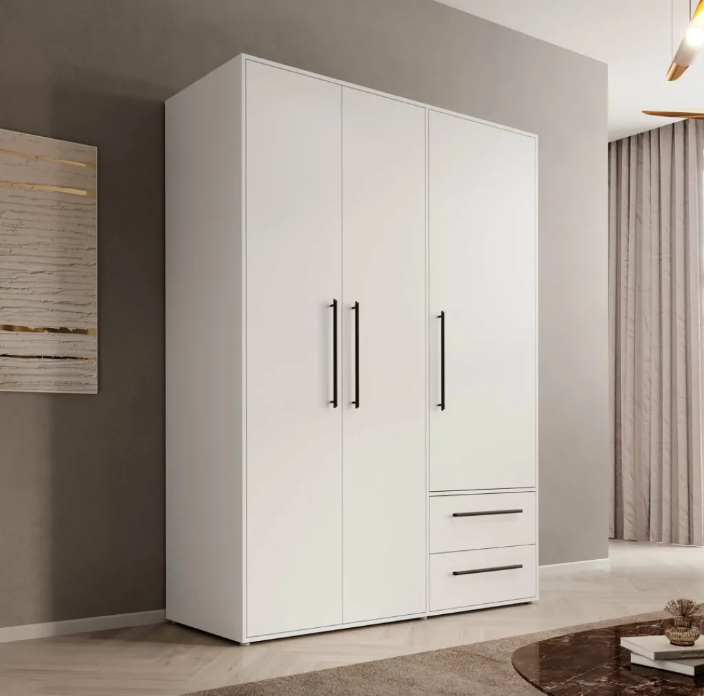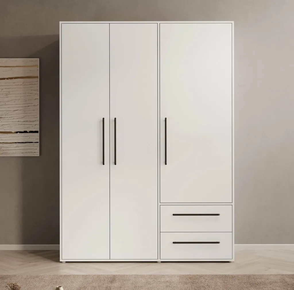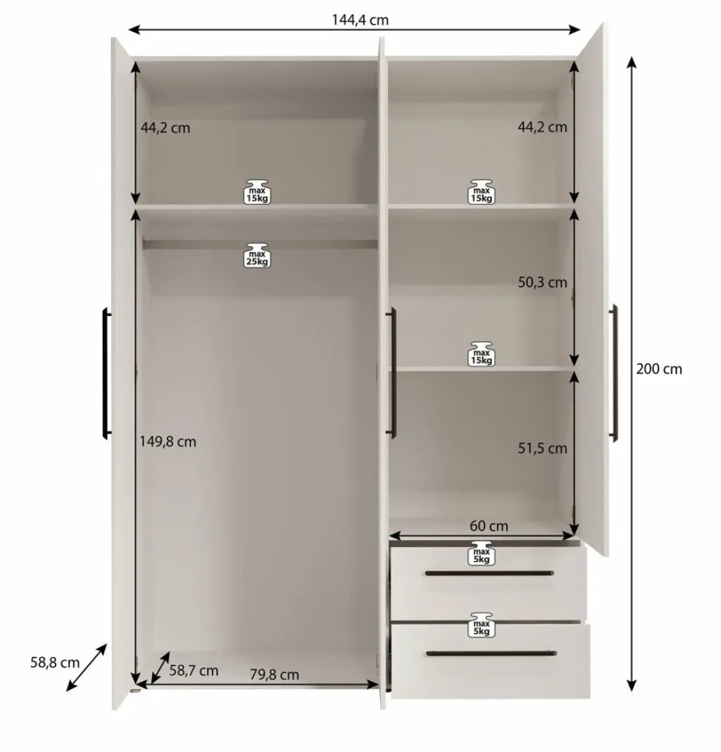 De binnenkant van de kledingkast is voorzien van 1 kledingroede, 4 opbergvakken en 2 opberglades met handgrepen, zodat je al je kleding netjes kunt opbergen en organiseren.