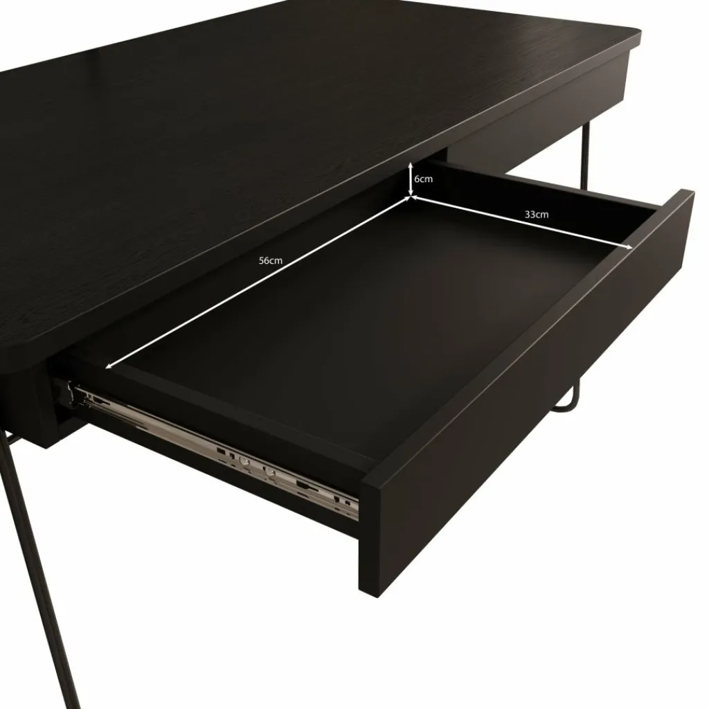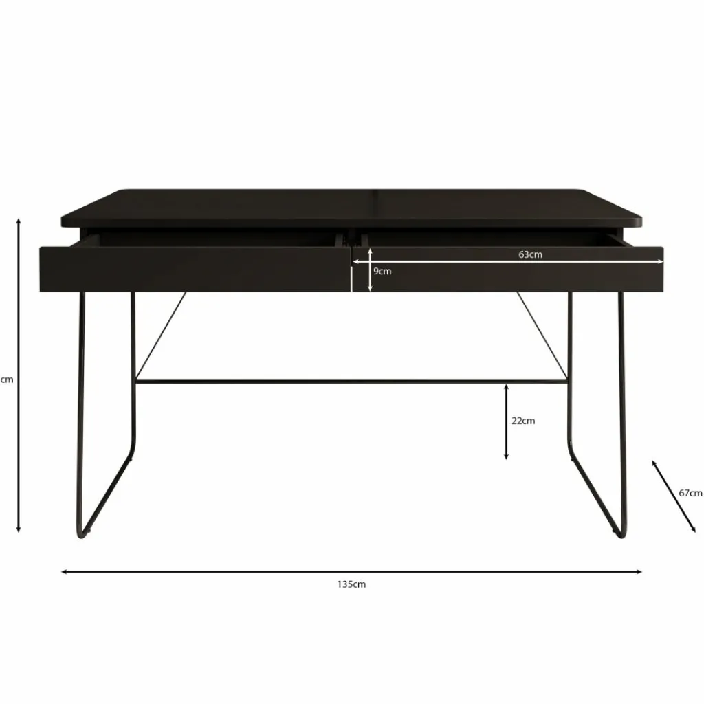 De royale werkruimte van 135×67 cm geeft je genoeg plek voor je laptop, extra scherm, notities én een kop koffie. Dankzij de twee onopvallend geïntegreerde lades heb je altijd pennen, kabels en papier binnen handbereik, maar blijft je werkblad netjes opgeruimd. De stabiele constructie en het onderhoudsvriendelijke oppervlak zorgen ervoor dat je jarenlang plezier hebt van dit bureau.