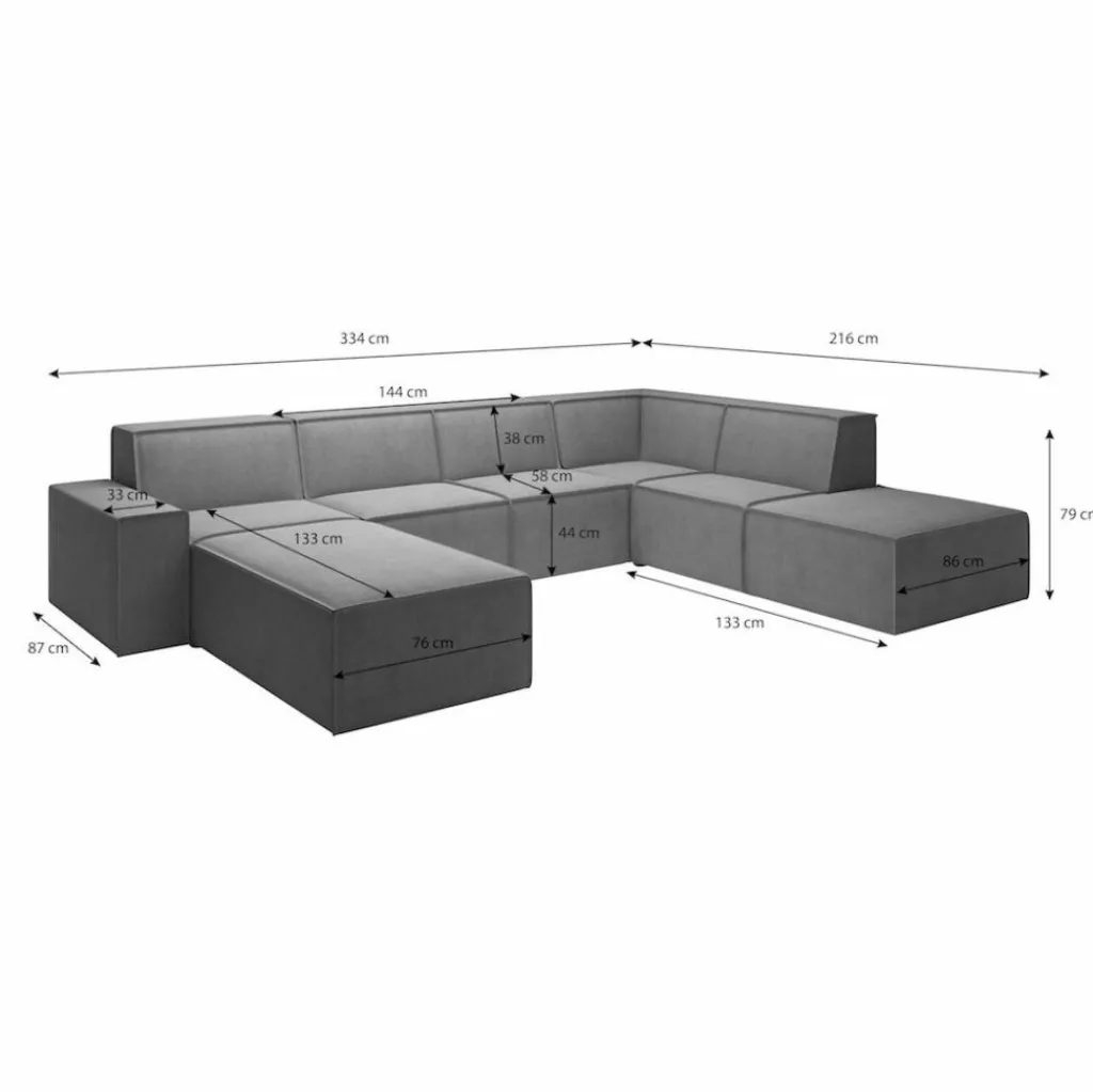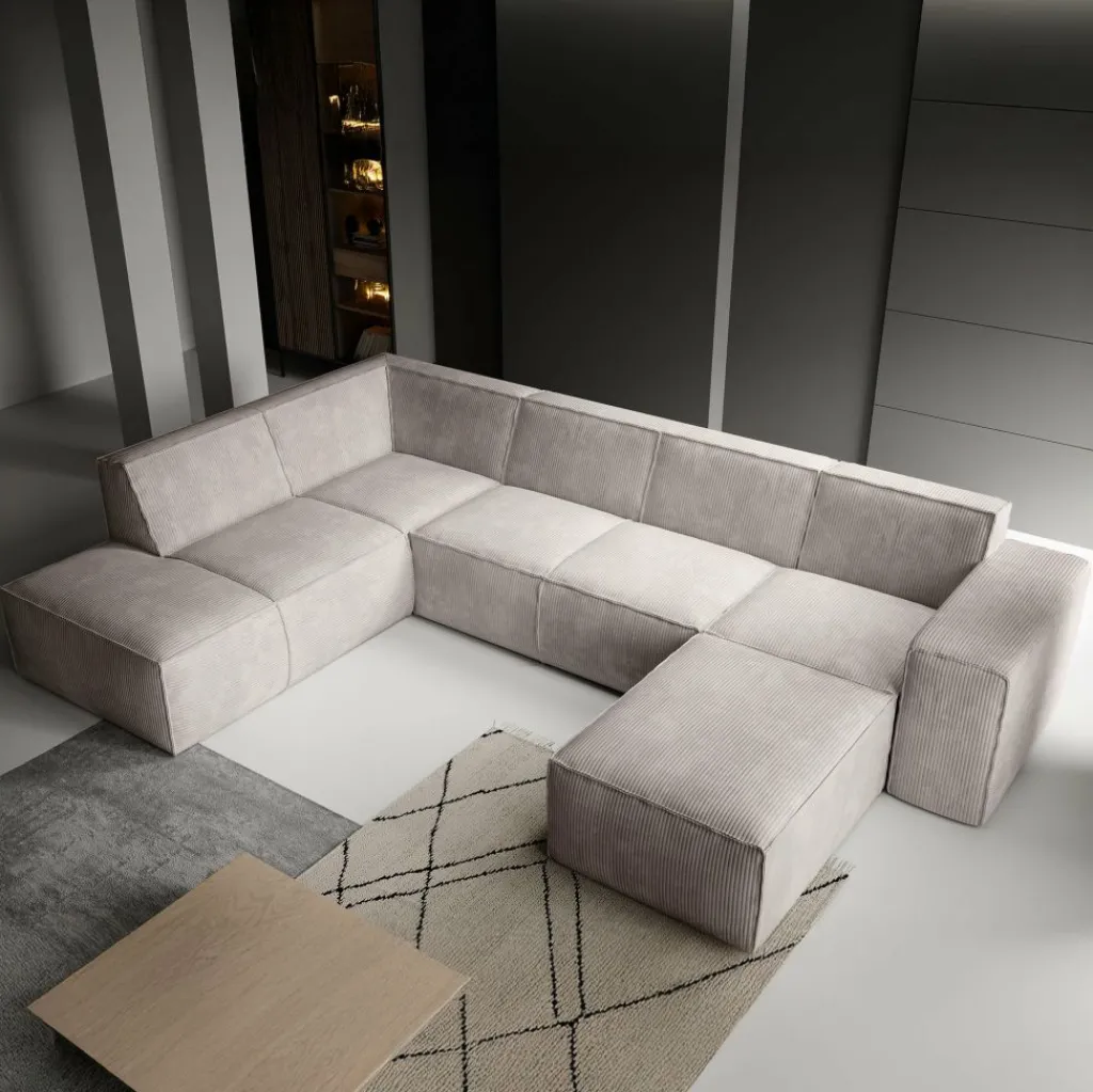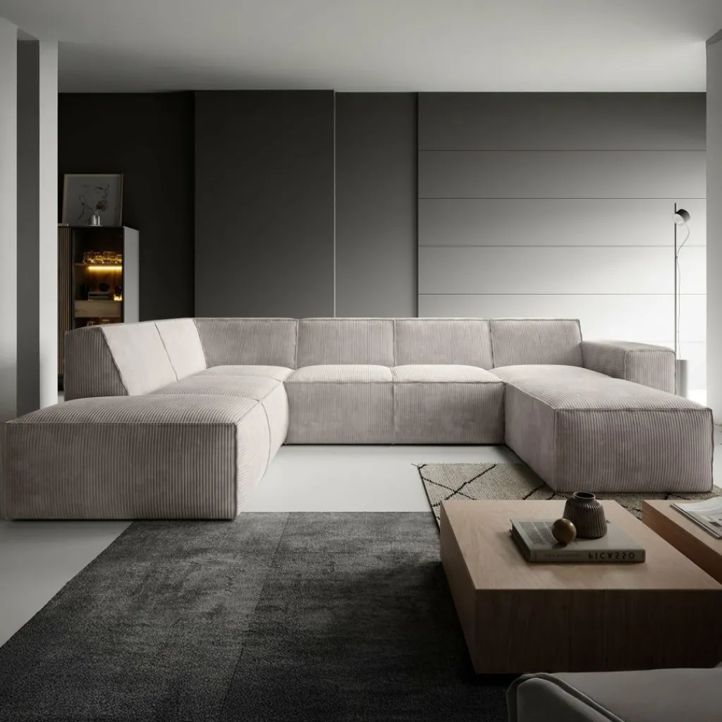 Hoekbank Monet XL is een royale loungebank met plek voor 6 tot 7 personen. De bank is uitgevoerd in een zachte ribstof in beige kleur en heeft een moderne, uitnodigende uitstraling.