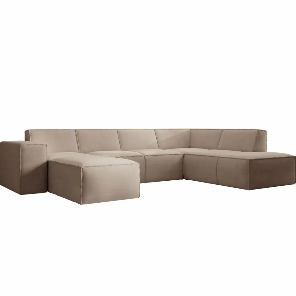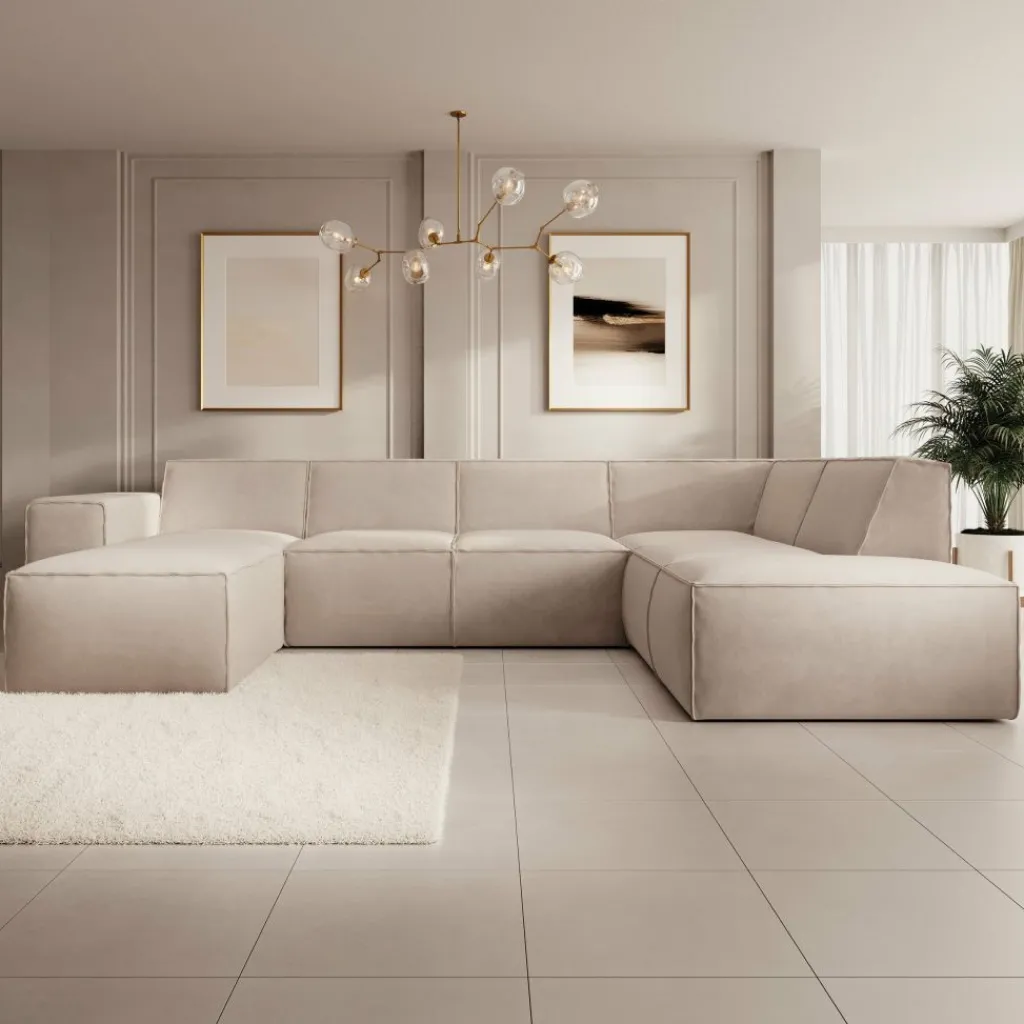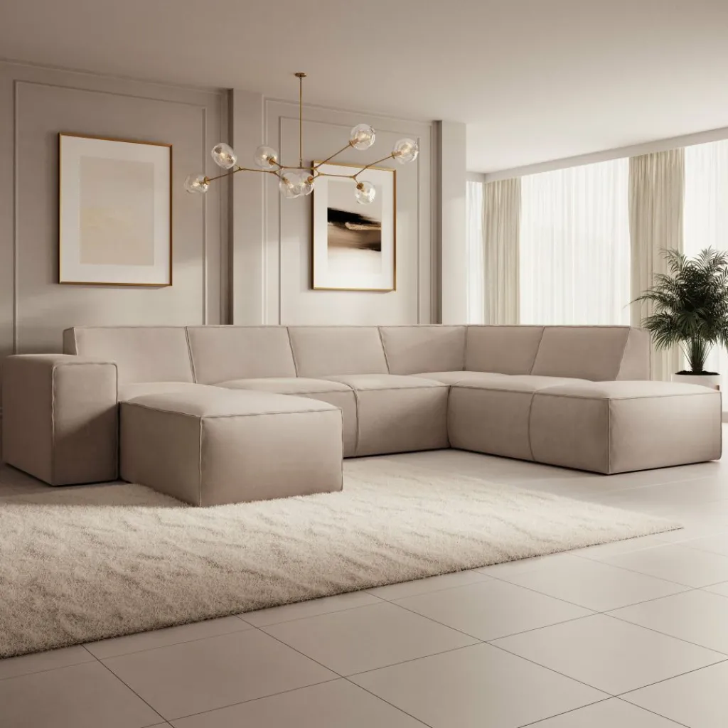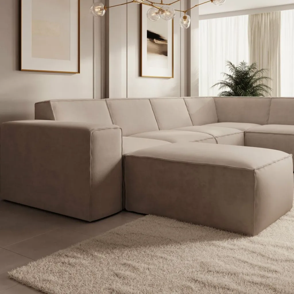 Hoekbank Monet XL is een royale loungebank met plek voor 6 tot 7 personen. De bank is uitgevoerd in een zachte stof in beige kleur en heeft een moderne, uitnodigende uitstraling.