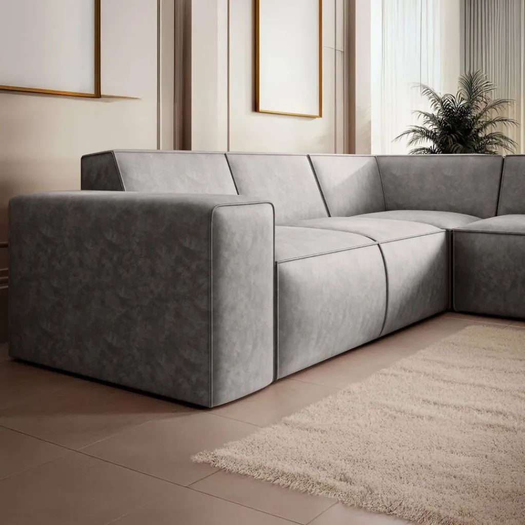 Hoekbank Monet is een royale L-vormige hoekbank met chaise longue. De ruime opstelling biedt plaats aan 4 tot 5 personen.