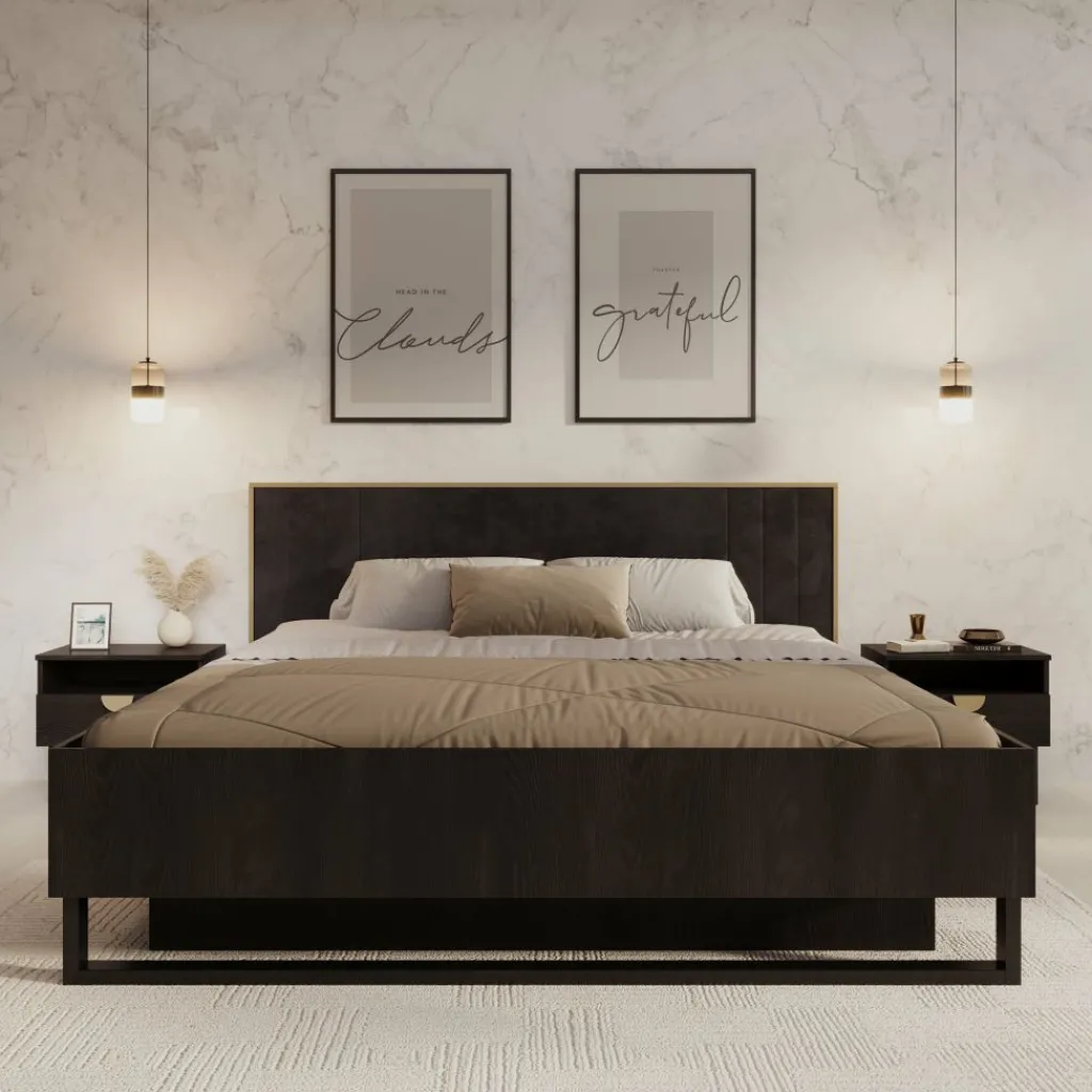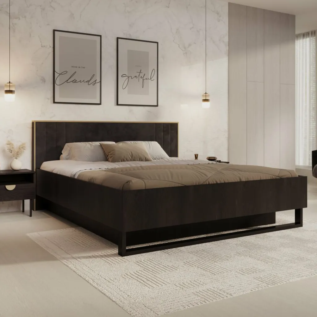 Tweepersoonsbed Monor is een bed geschikt voor matrasmaat 180×200 cm. Het meubel is gemaakt in een zwart eiken kleur. Het bed wordt geleverd zonder matras. De lattenbodem is wel inbegrepen. Deze lattenbodem beschikt over een gasliftsysteem. Hierdoor kan je de bodem omhoog kantelen zodat er opbergruimte ontstaat. Handig voor bijvoorbeeld kussens, beddengoed of dekens. Het hoofdbord is gemaakt van stof.