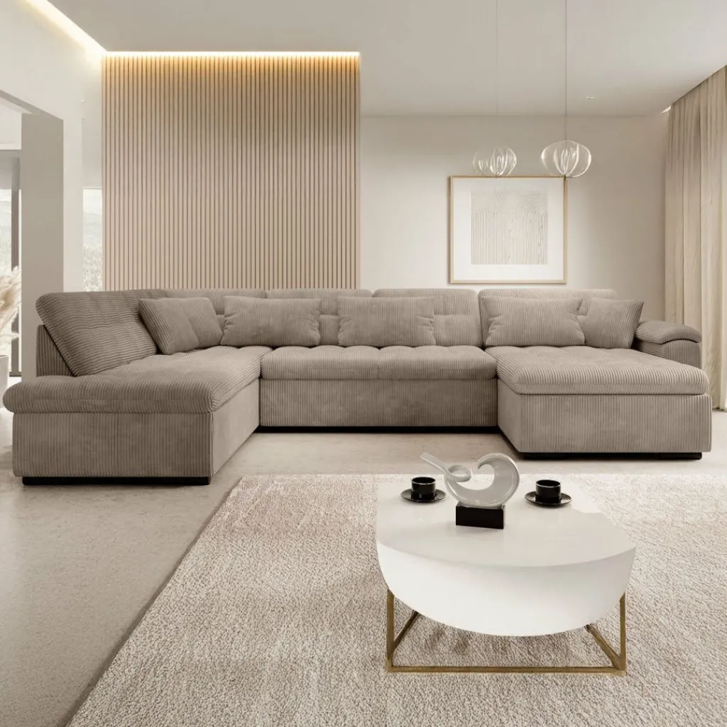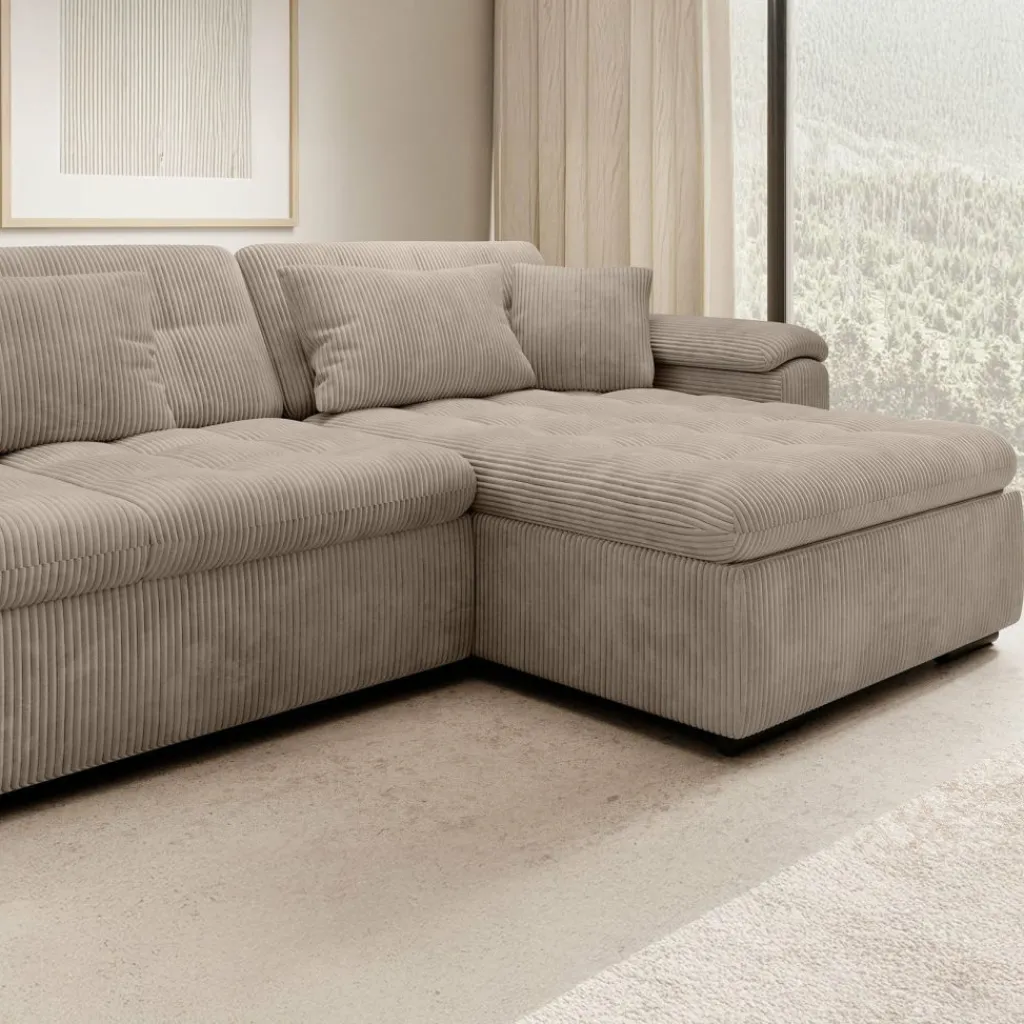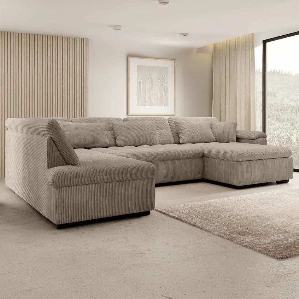 Met hoekbank Nicoreta haal je een royale en moderne zitplek in huis. De stevige stoffering in ribstof zorgt voor een luxe uitstraling en voelt zacht aan. De ruime U-vormige opstelling biedt plaats voor 5 tot 6 personen.