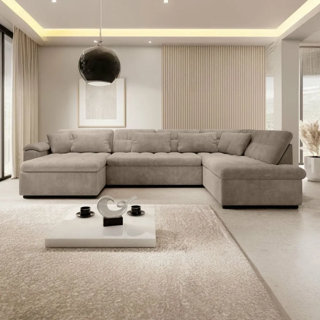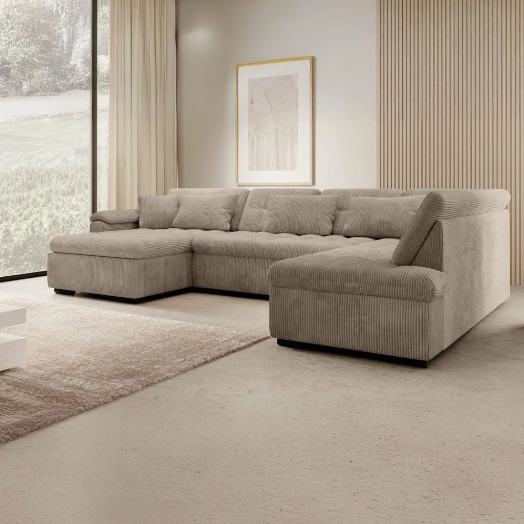 Met hoekbank Nicoreta haal je een royale en moderne zitplek in huis. De stevige stoffering in ribstof zorgt voor een luxe uitstraling en voelt zacht aan. De ruime U-vormige opstelling biedt plaats voor 5 tot 6 personen.