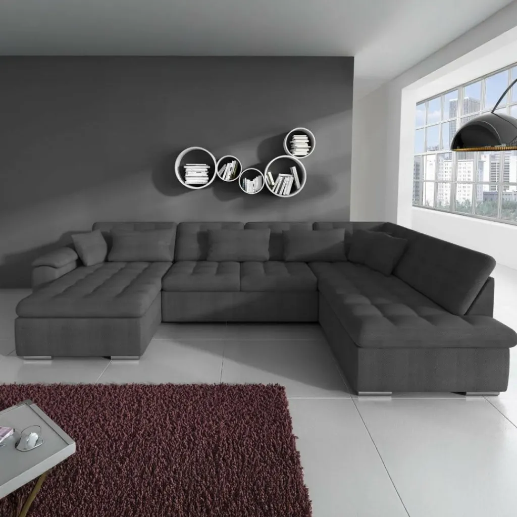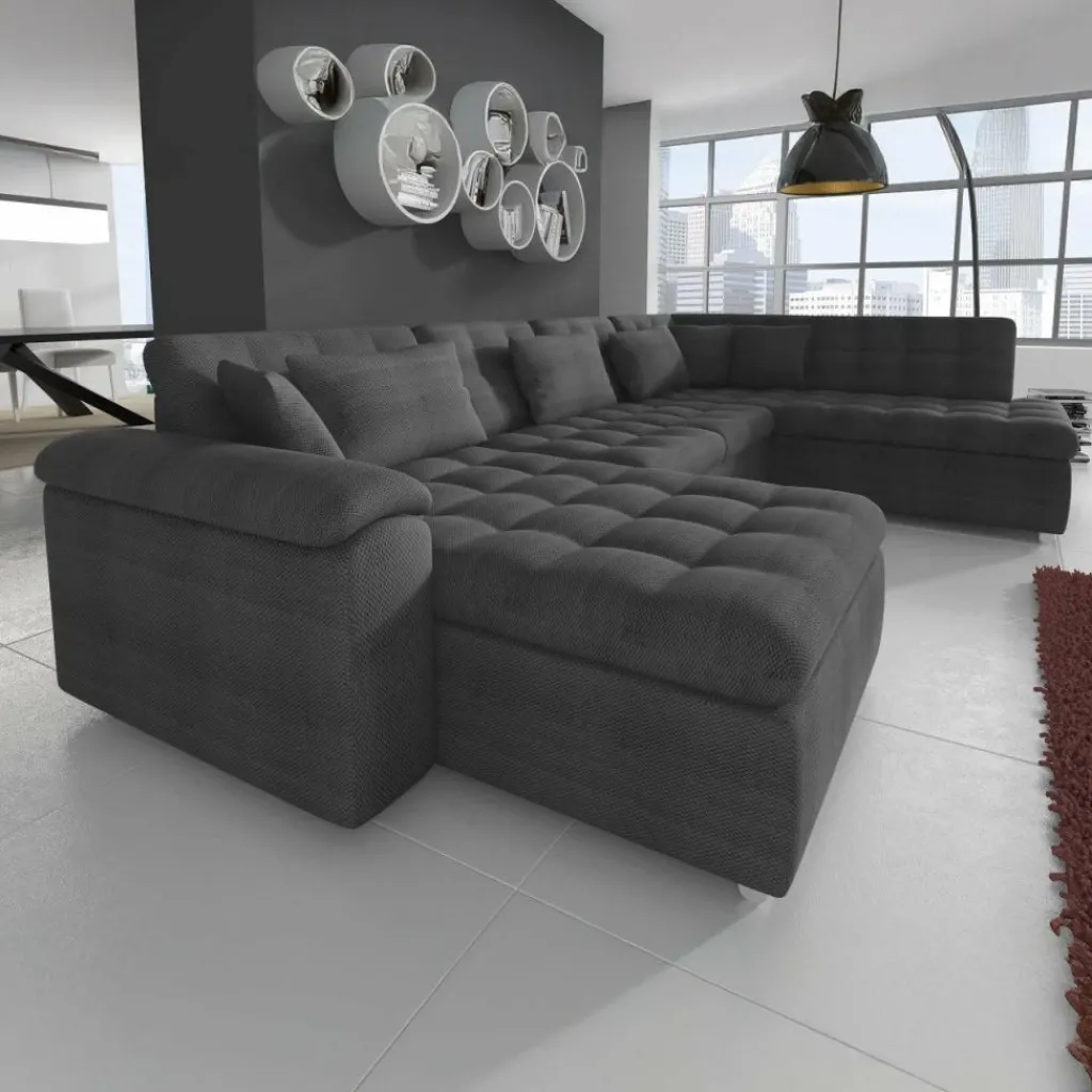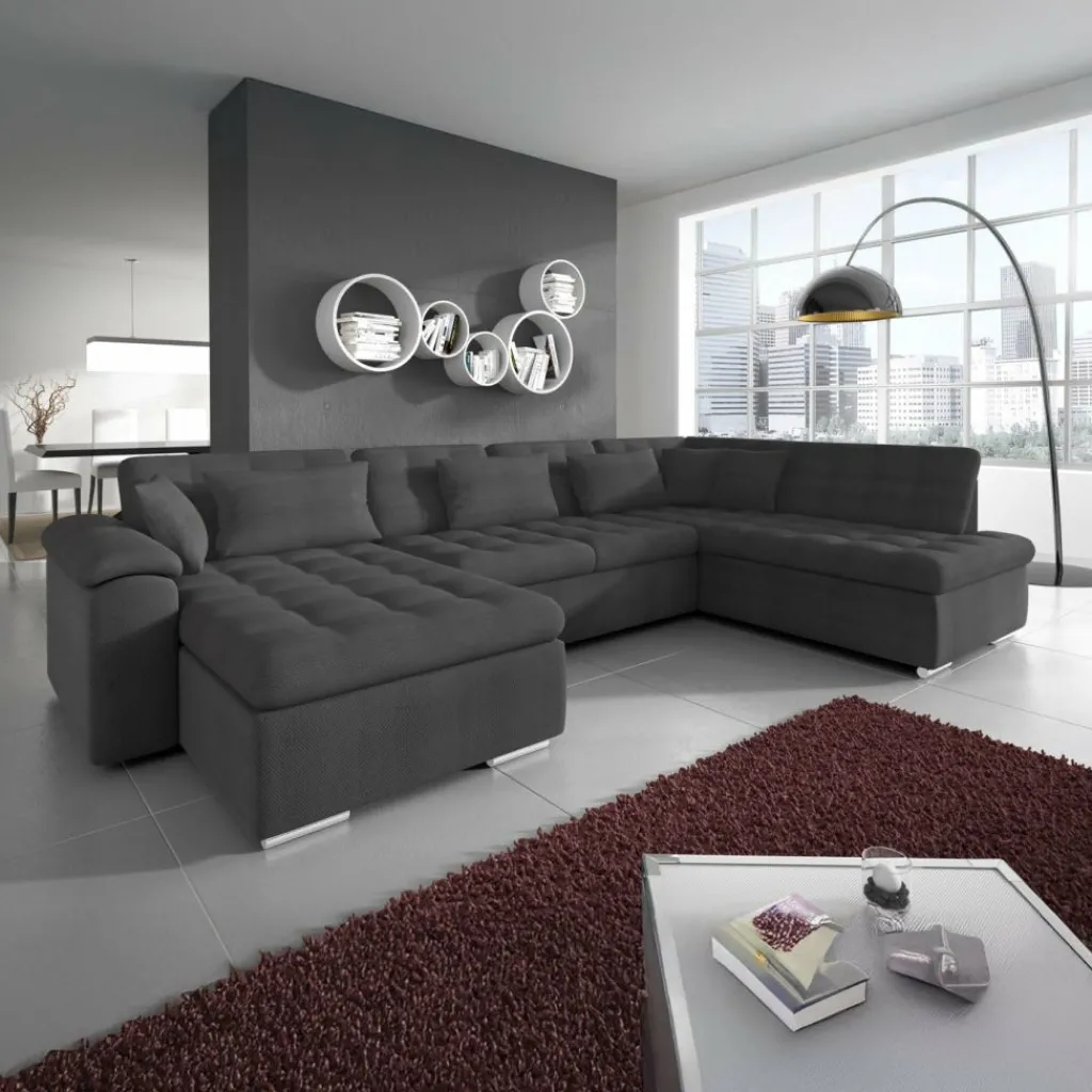 Met hoekbank Nicoreta haal je een royale en moderne zitplek in huis. De zachte grijze stof voelt aangenaam aan en zorgt voor een warme sfeer in de woonkamer, terwijl de vaste kussens met doorgestikte zitting zorgen voor een strak en verzorgd geheel. De ruime U-vormige opstelling biedt plaats aan 5 tot 6 personen.