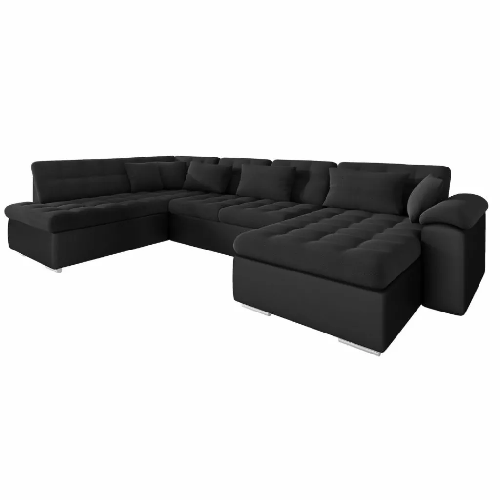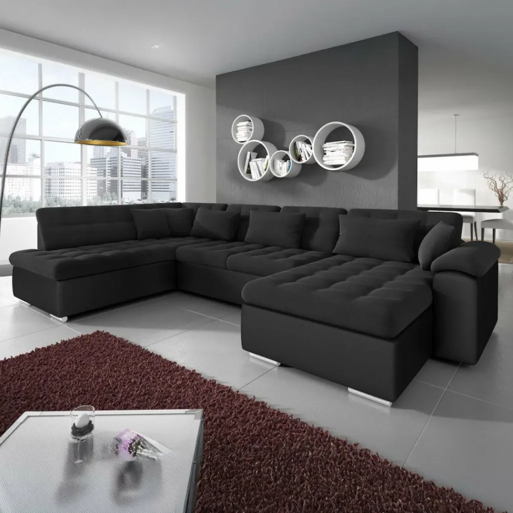 Met hoekbank Nicoreta haal je een royale en moderne zitplek in huis. De zachte zwarte stof voelt aangenaam aan en zorgt voor een warme sfeer in de woonkamer, terwijl de vaste kussens met doorgestikte zitting zorgen voor een strak en verzorgd geheel. De ruime U-vormige opstelling biedt plaats voor 5 tot 6 personen.