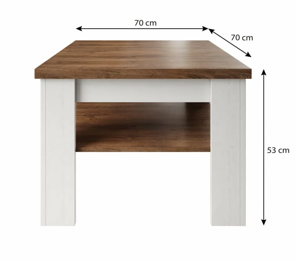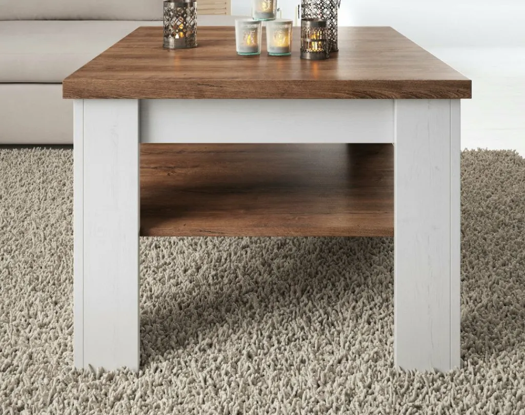 Salontafel Parello is een salontafel gemaakt van spaanplaat in wit met eiken kleur. Het model is eenvoudig en strak. Hierdoor past de salontafel in zowel een landelijk als strak interieur. De salontafel beschikt over een opbergplank. De Parello heeft een lengte van 70 cm.
