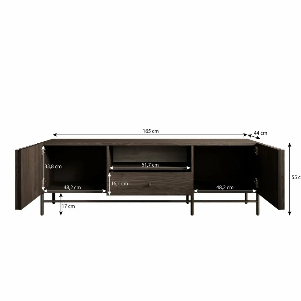 TV-Meubel Paz is een tv-meubel in moderne, warme stijl. Het meubel is gemaakt van een stevige spaanplaat constructie in donker eiken kleur.