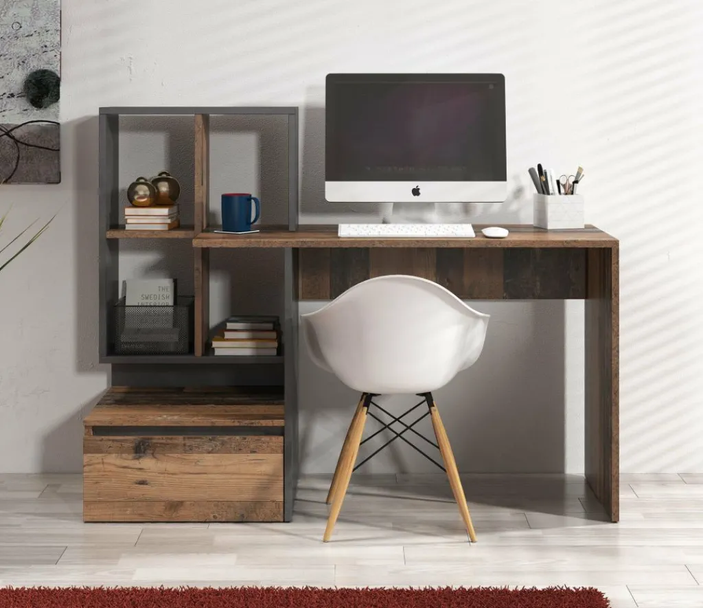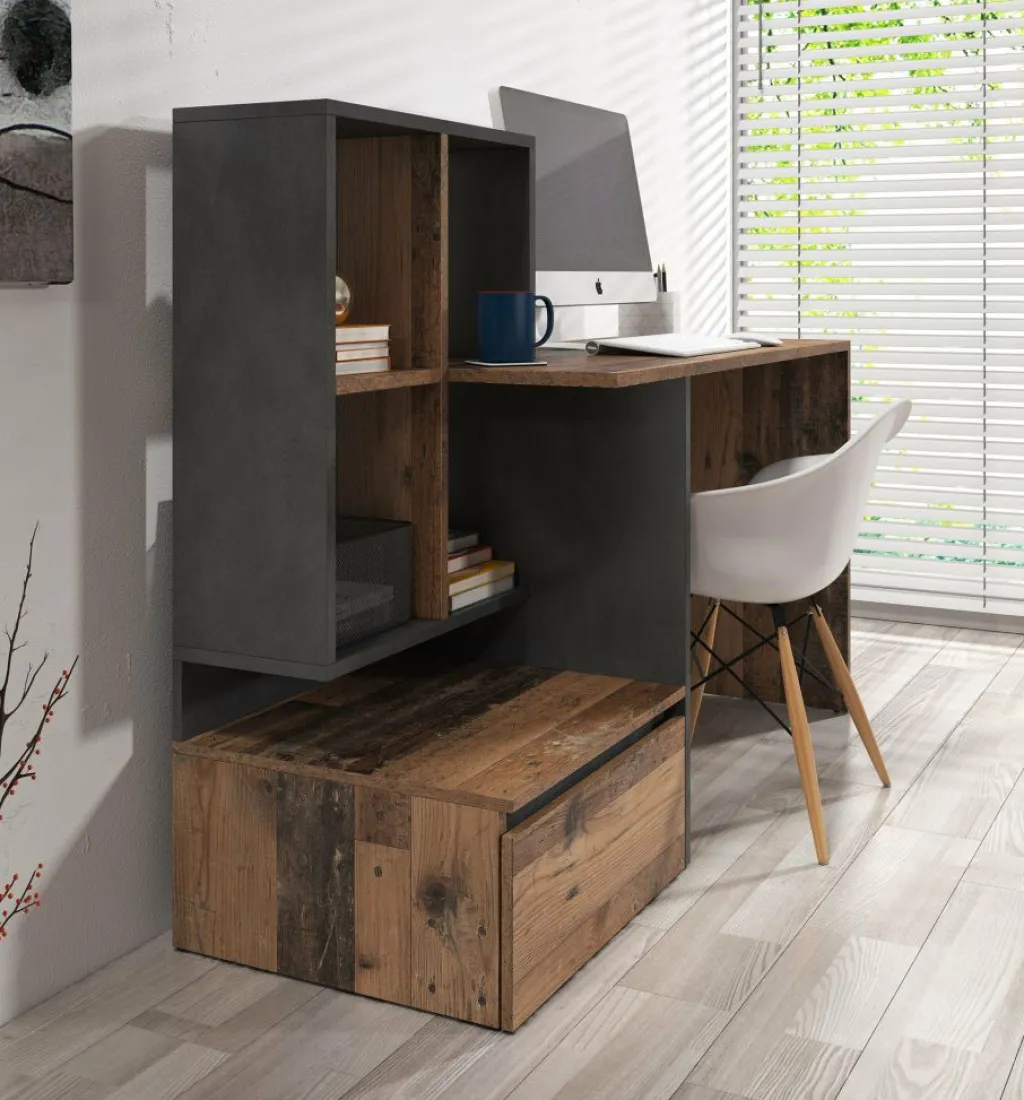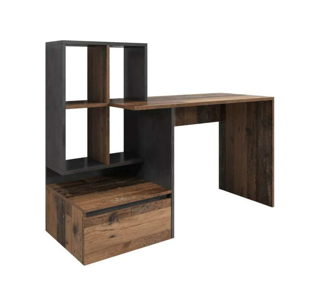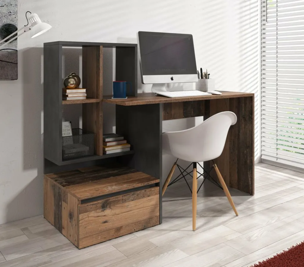 Het bureau beschikt over een bureaublad van 113,4 cm breed. Links van het bureau bevinden zich 4 open schappen met daaronder een handige opberglade.