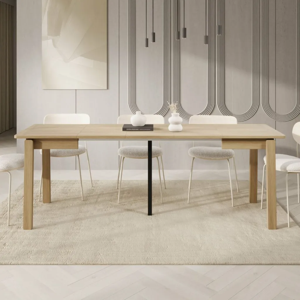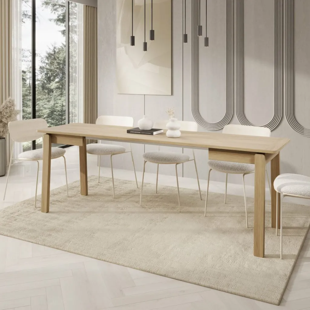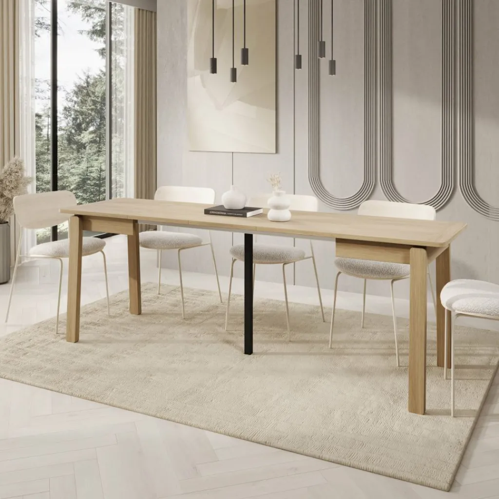 De licht eikenlook afwerking geeft de Portino een frisse en strakke uitstraling die goed past in moderne eetkamers. Door de compacte basisafmeting en de ruime verlengmogelijkheid is deze tafel praktisch en flexibel in gebruik.