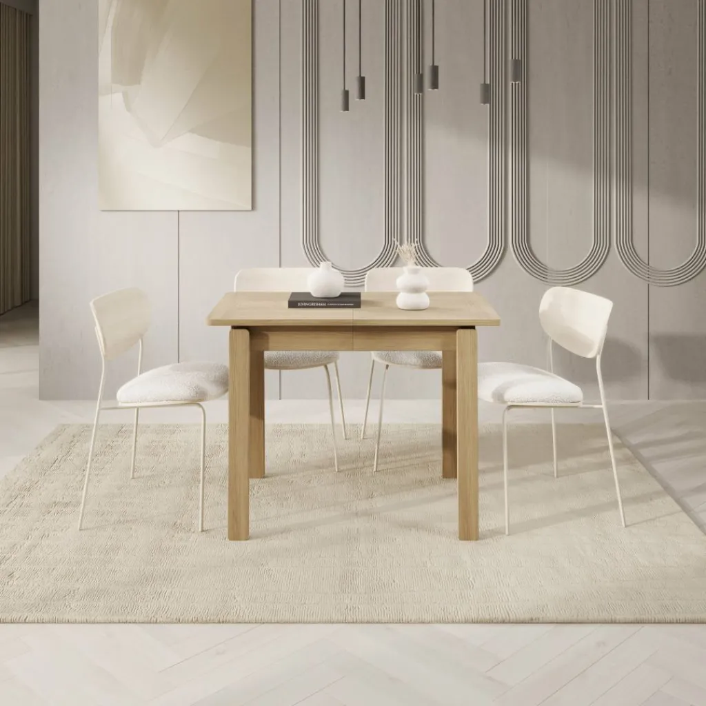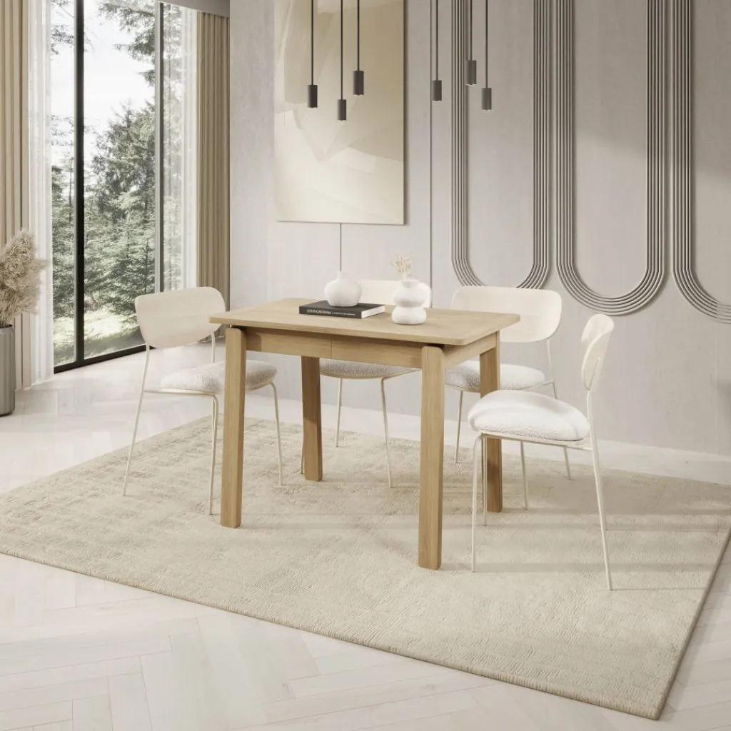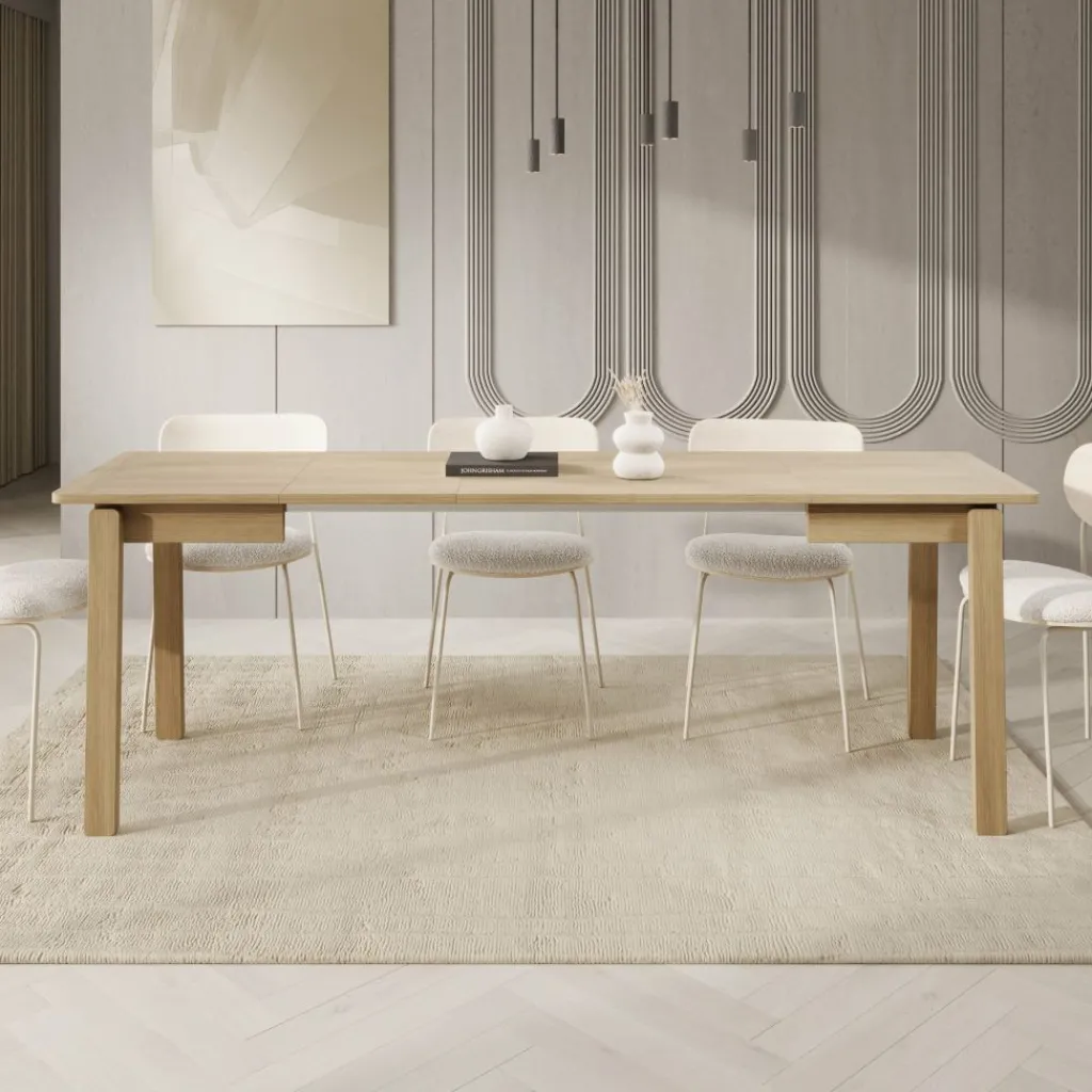 De licht eikenlook afwerking geeft de Portino een frisse en strakke uitstraling die goed past in moderne eetkamers. Door de compacte basisafmeting en de ruime verlengmogelijkheid is deze tafel praktisch en flexibel in gebruik.