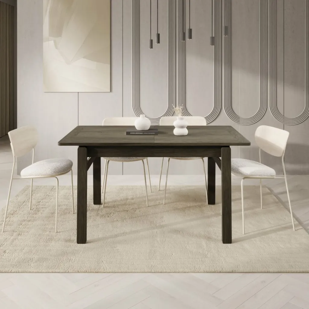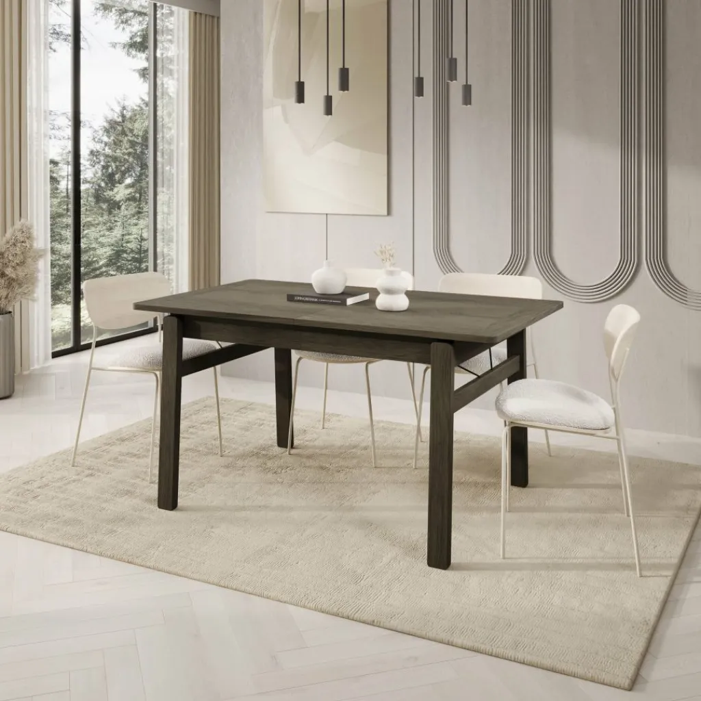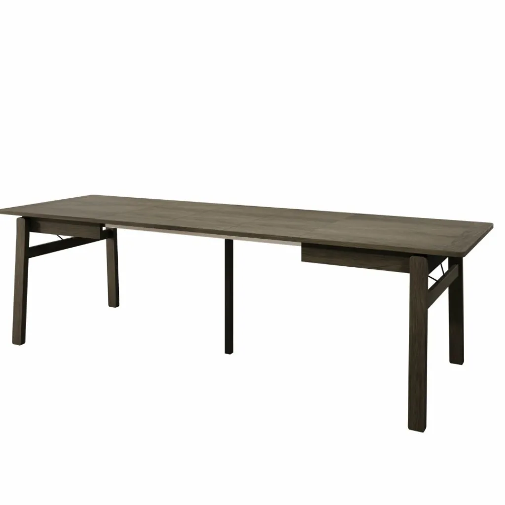 De donker eikenlook afwerking geeft de tafel een krachtige en verzorgde uitstraling die goed past in moderne eetkamers. Dankzij de rechte vormgeving en stabiele poten biedt de Portino voldoende ruimte en ondersteuning voor stoelen rondom, zowel in gesloten als uitgeschoven stand.