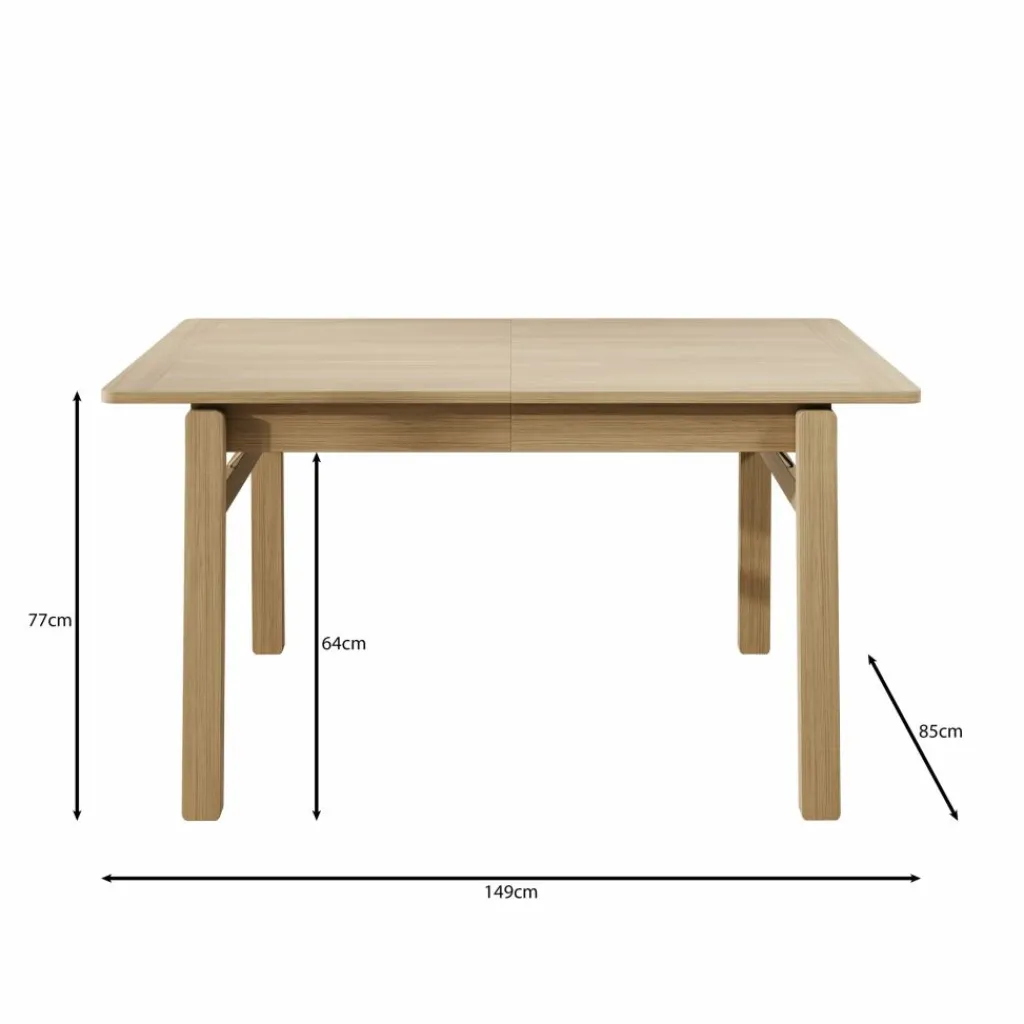 De eetkamertafel Portino is uitgevoerd in donker eikenlook en heeft een afmeting van 149 × 77 × 85 cm. Dankzij het uitschuifbare systeem kan de tafel worden verlengd tot 269 cm, waardoor er eenvoudig extra zitplaatsen ontstaan. Dit maakt de tafel geschikt voor zowel dagelijks gebruik als momenten waarop je meer ruimte nodig hebt.
