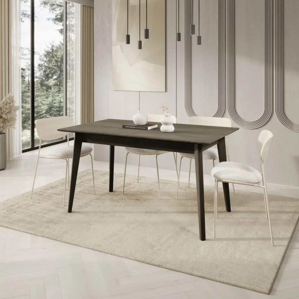 De donker eikenlook afwerking geeft de Portino een duidelijke en strakke uitstraling die goed past in moderne en eigentijdse eetkamers. De rechte vormgeving en solide poten zorgen voor voldoende ruimte en een stevige basis in zowel gesloten als uitgeschoven stand.