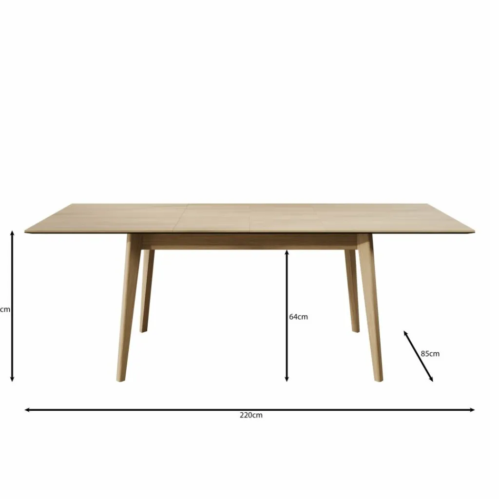 De eetkamertafel Portino is uitgevoerd in donker eikenlook en heeft een afmeting van 145 × 77 × 85 cm. Dankzij het uitschuifbare systeem kan de tafel worden verlengd tot 220 cm, waardoor je eenvoudig extra zitplaatsen creëert wanneer dat nodig is. Dit maakt de tafel geschikt voor zowel dagelijks gebruik als etentjes met meerdere personen.