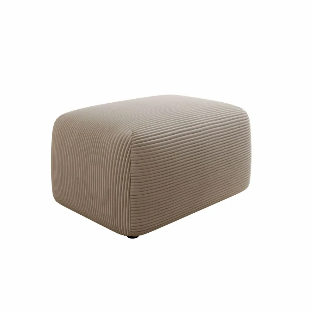 De Prudence poef is uitgevoerd in een warme bruine ribstof en heeft een rustige, organische vormgeving met afgeronde hoeken die zorgen voor een warme en uitnodigende uitstraling. De horizontale ribstructuur van de stof geeft de poef een herkenbaar karakter en sluit goed aan bij verschillende interieurstijlen, van Scandinavisch tot modern landelijk. Met afmetingen van 70 x 55 x 38 cm is de Prudence zowel geschikt als voetensteun bij een bank als als zelfstandig zitelement in de woonkamer.