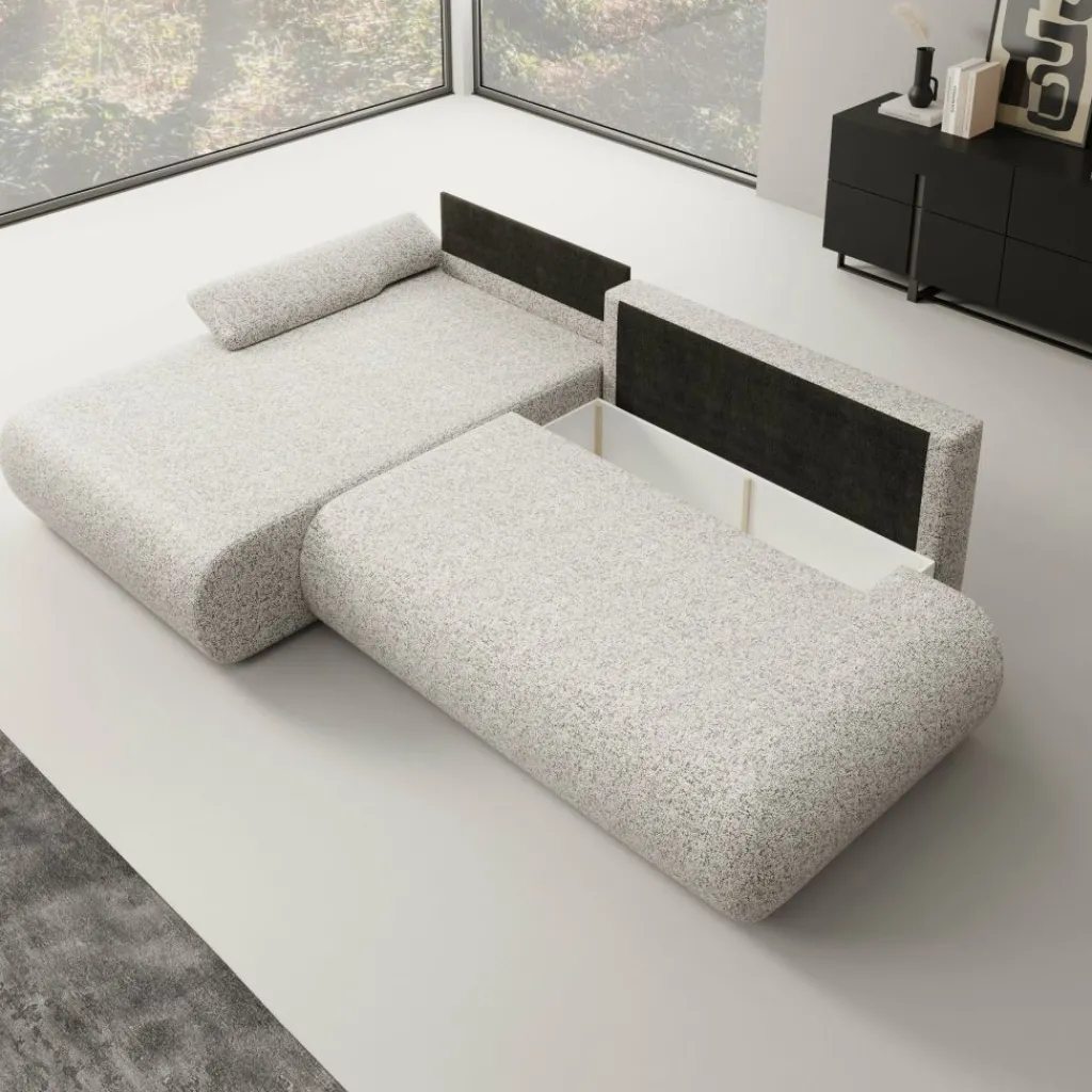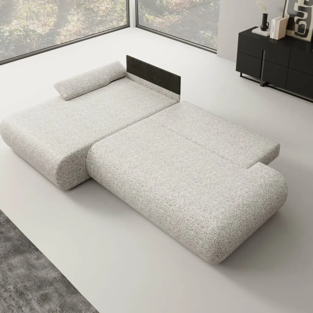 Deze hoekbank kan worden uitgeklapt tot een vlak slaapoppervlak. Hierdoor functioneert de Pucet niet alleen als zithoek, maar ook als praktische slaapbank voor logees. Het uitklappen gaat eenvoudig en biedt voldoende ruimte voor één tot twee personen.