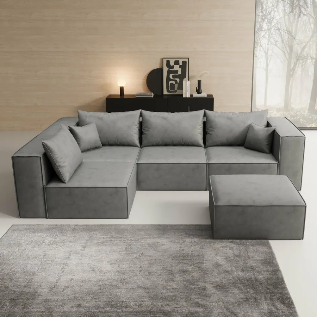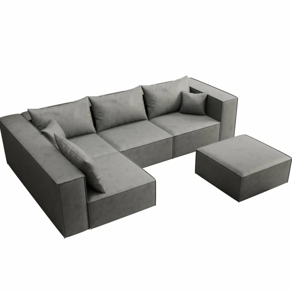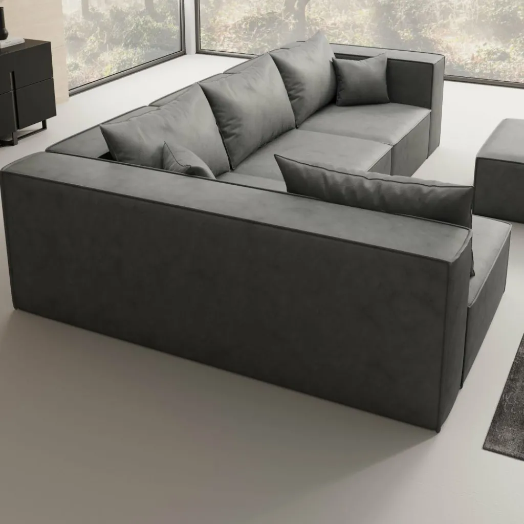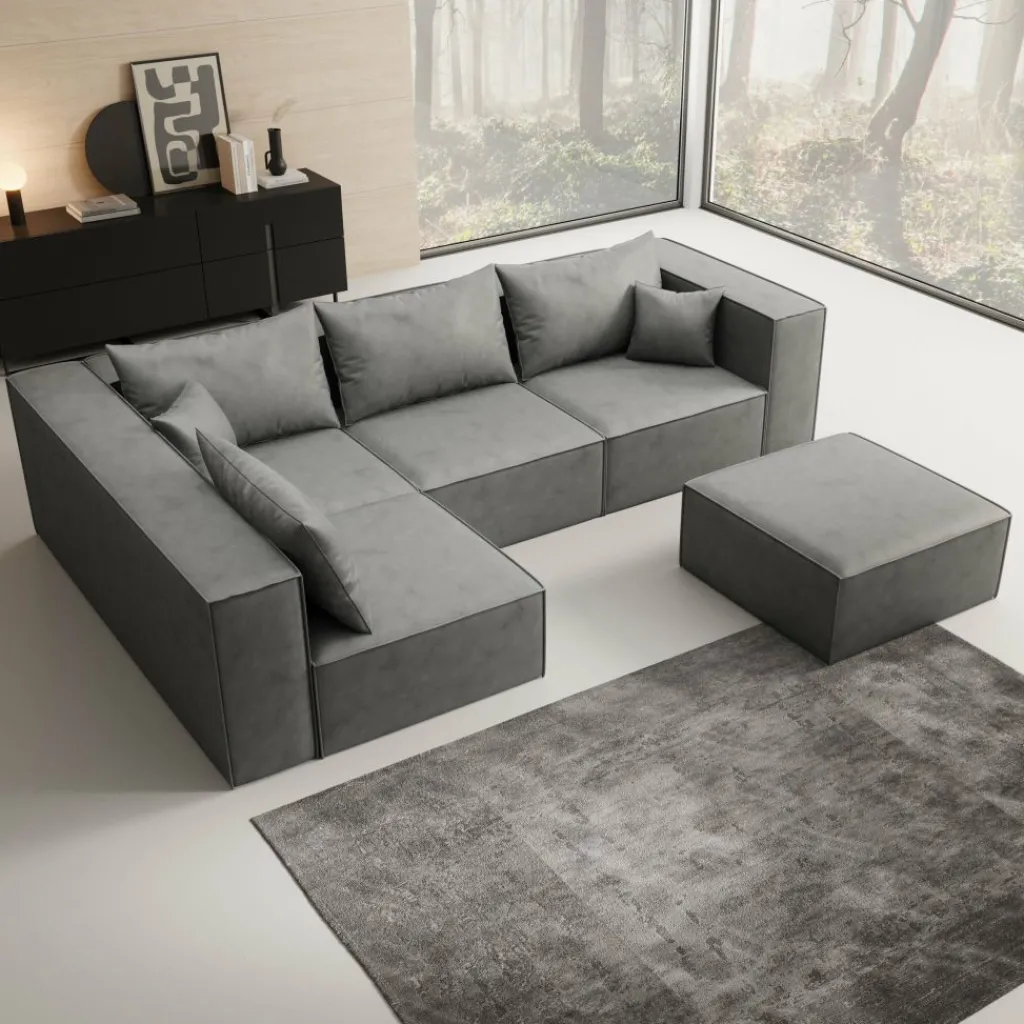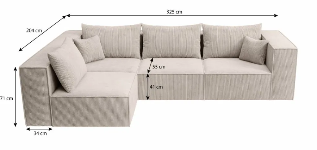 Deze hoekbank is modulair. Dat houdt in dat je zelf de opstelling kunt bepalen. Je kunt het lange gedeelte links of rechts plaatsen.