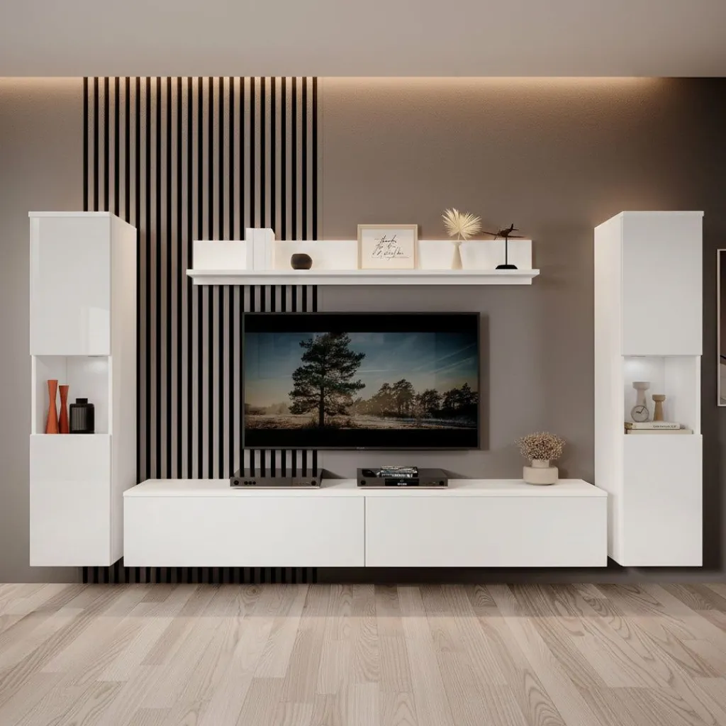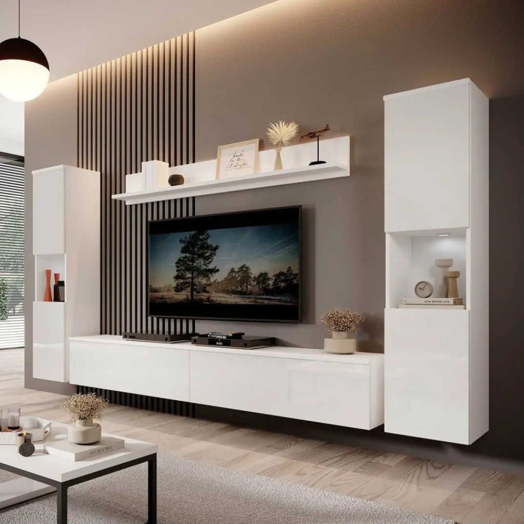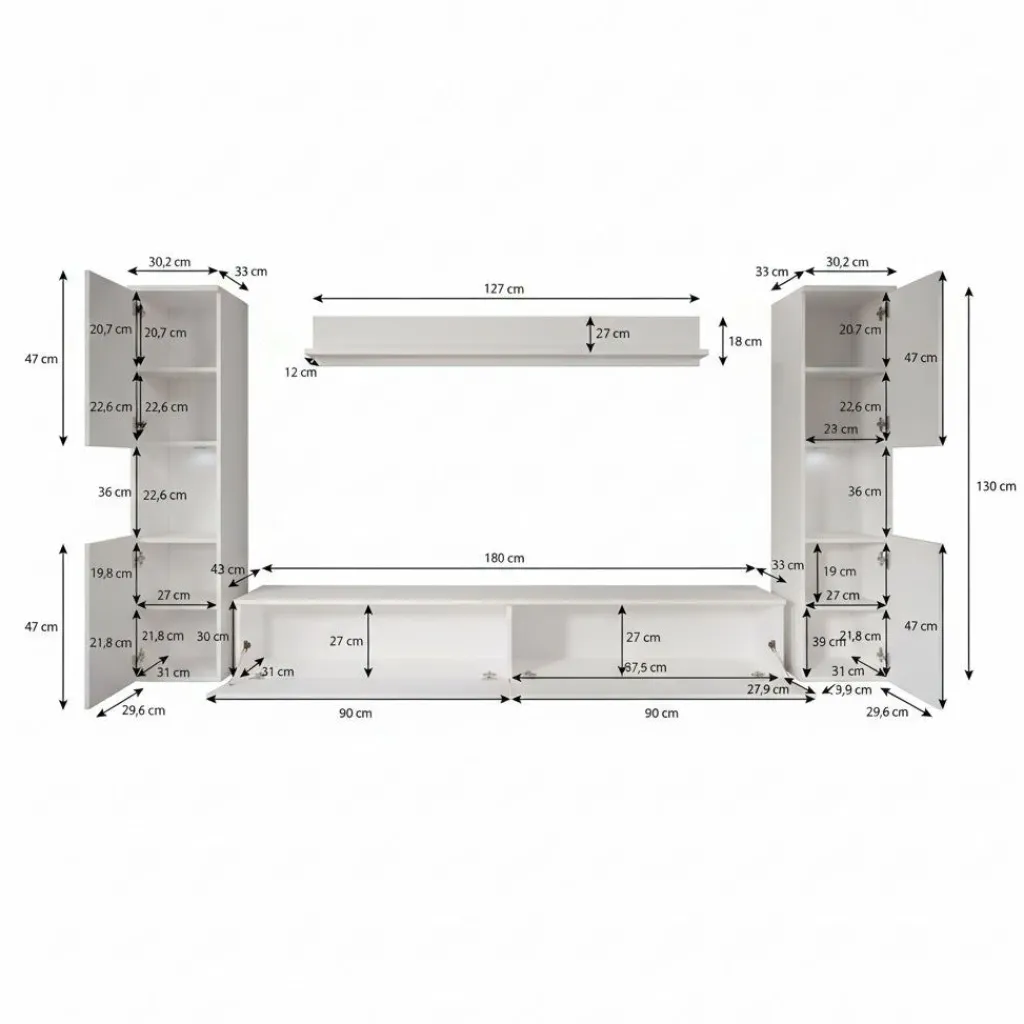 De kasten zijn aan de muur op te hangen. Toch liever een staand model? Dat kan ook, door eenvoudig de bijgeleverde pootjes te monteren onder de meubels. De pootjes zijn zilverkleurig, gemaakt van kunststof en hebben een hoogte van 2 cm.
