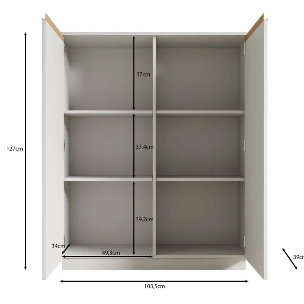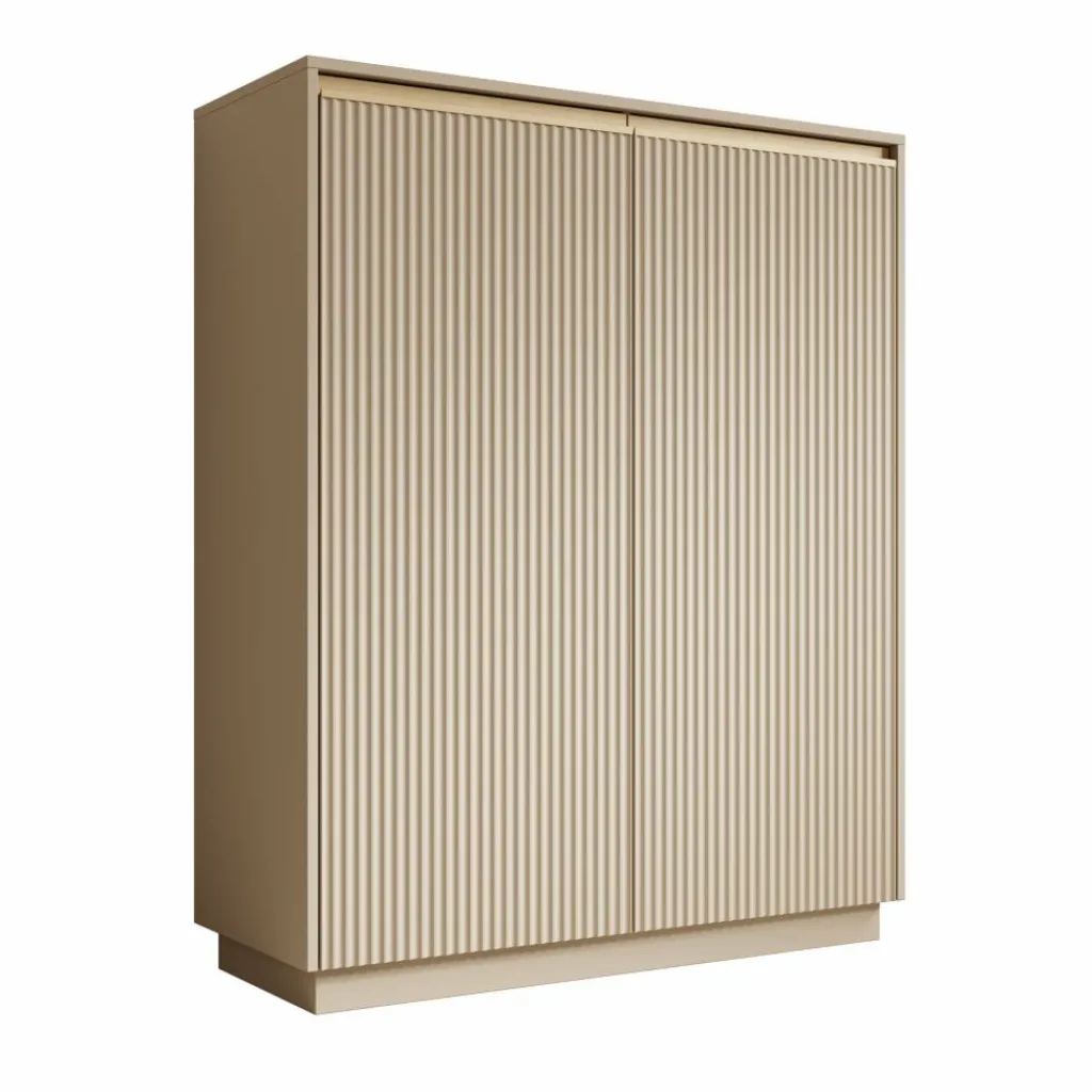 Dressoir Remy is een opbergkast in een moderne stijl. De kast beschikt over 2 greeploze deuren waarachter 6 opbergvakken zitten. De voorkant van de deuren hebben een latten patroon. Het meubel is uitgevoerd in de kleur beige.