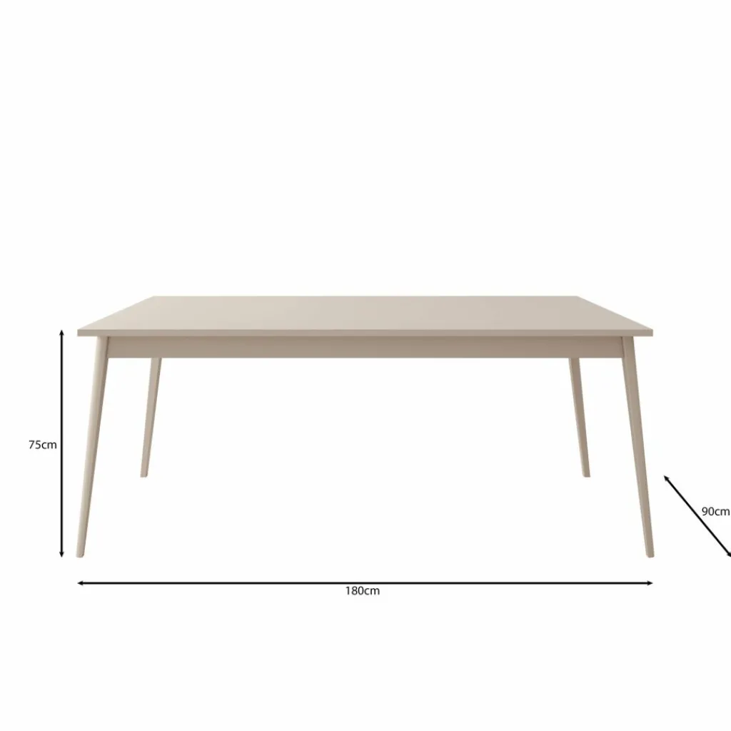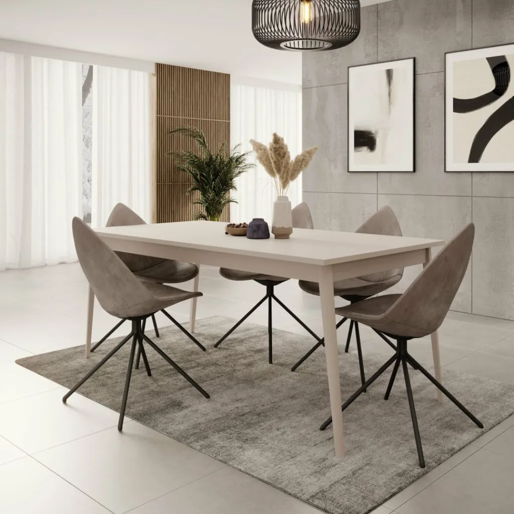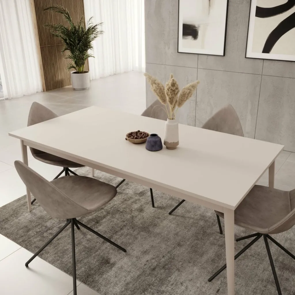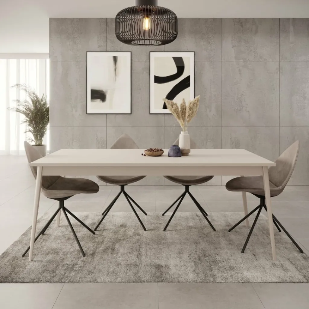 De Reunion eetkamertafel in beige combineert een strak ontwerp met een warme, moderne uitstraling. Dankzij het minimalistische design en de neutrale kleur past deze tafel moeiteloos in uiteenlopende interieurstijlen, van modern tot Scandinavisch. De zachte beige tint zorgt voor een lichte en rustige sfeer, terwijl de slanke poten een elegant en luchtig effect geven.