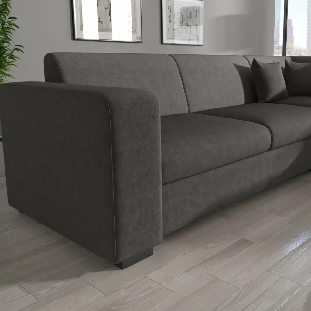 Hoekbank Santana is een stijlvolle én comfortabele bank die moeiteloos in elk interieur past. Deze ruime hoekbank biedt plaats aan vier personen en is bekleed met een luxueuze velvet stof in grijs, wat zorgt voor een elegante uitstraling met een zachte touch.