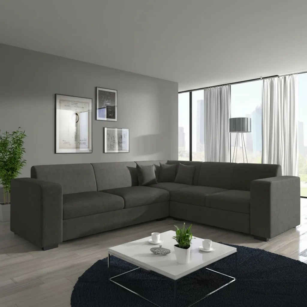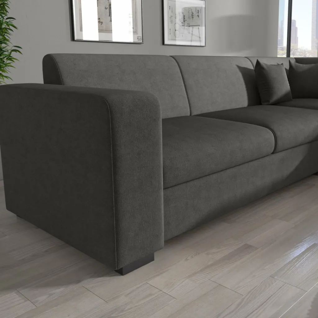 Hoekbank Santana is een stijlvolle én comfortabele bank die moeiteloos in elk interieur past. Deze ruime hoekbank biedt plaats aan vier personen en is bekleed met een luxueuze velvet stof in grijs, wat zorgt voor een elegante uitstraling met een zachte touch.