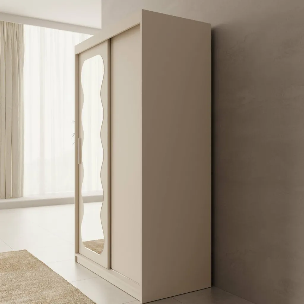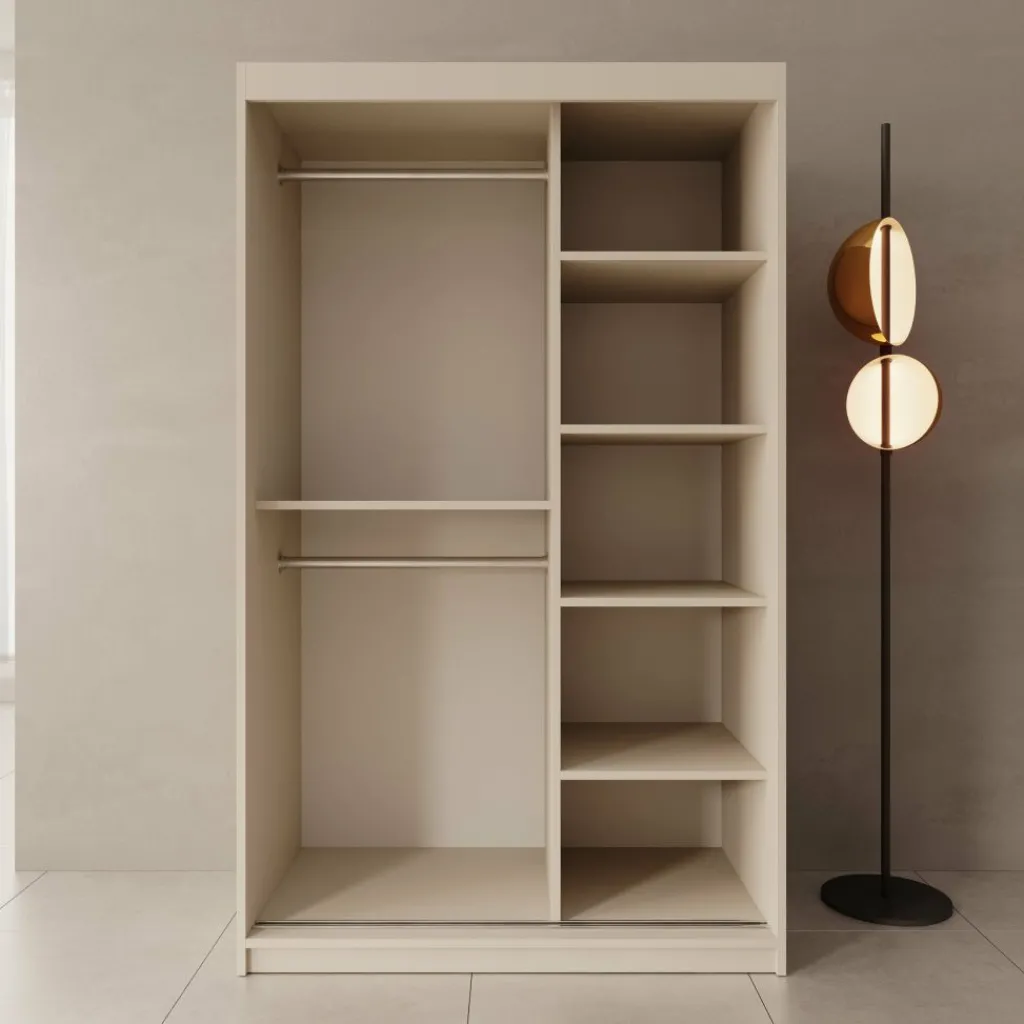 De Sentoji kledingkast is een praktische schuifdeurkast uitgevoerd in beige en geschikt voor de slaapkamer of dressing. Met een breedte van 120 cm, een diepte van 62 cm en een hoogte van 200 cm biedt de kast ruime en overzichtelijke opbergruimte zonder veel vloeroppervlak in te nemen.
