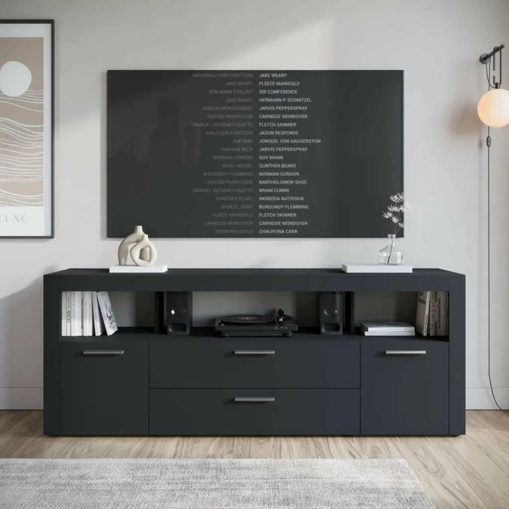 TV-meubel Sharon combineert een frisse, moderne look met praktische opbergruimte. Het meubel is uitgevoerd in een diepzwarte kleur.