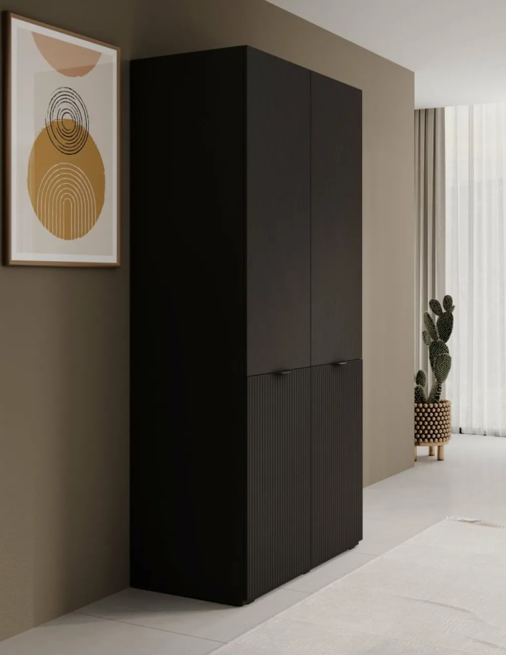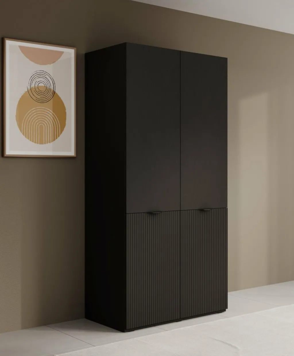 De Shelton kledingkast is een praktische opbergoplossing met twee draaideuren, ideaal voor slaapkamers, gangen of andere ruimtes waar extra kastruimte nodig is. Achter de deuren vind je een kledingroede voor het netjes ophangen van kledingstukken zoals jassen, jurken en overhemden. Daarnaast zijn er legplanken beschikbaar om bijvoorbeeld truien, broeken of schoenen overzichtelijk op te bergen, zodat alles snel terug te vinden is.