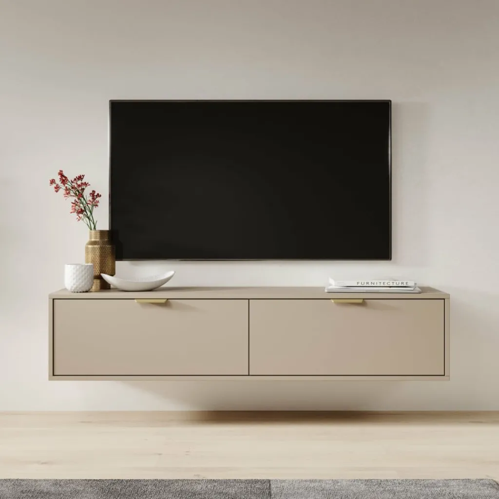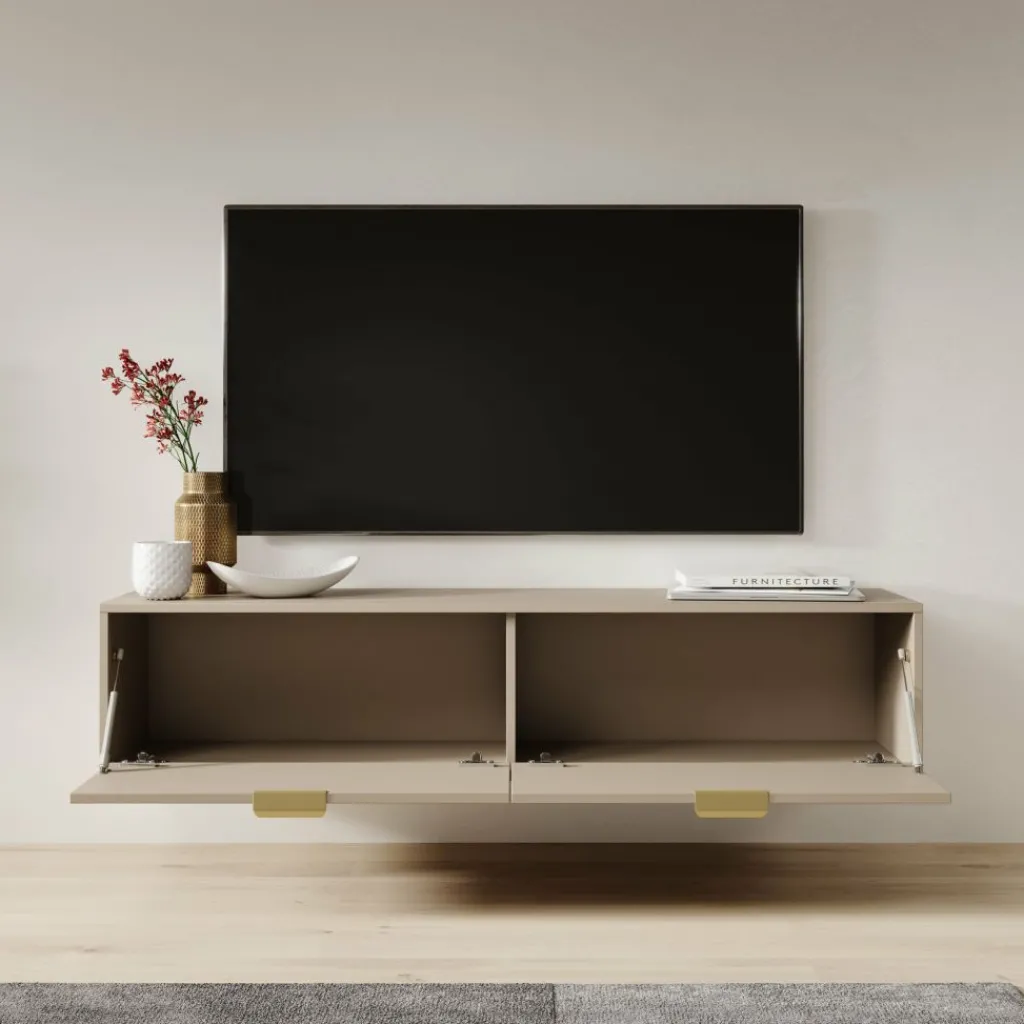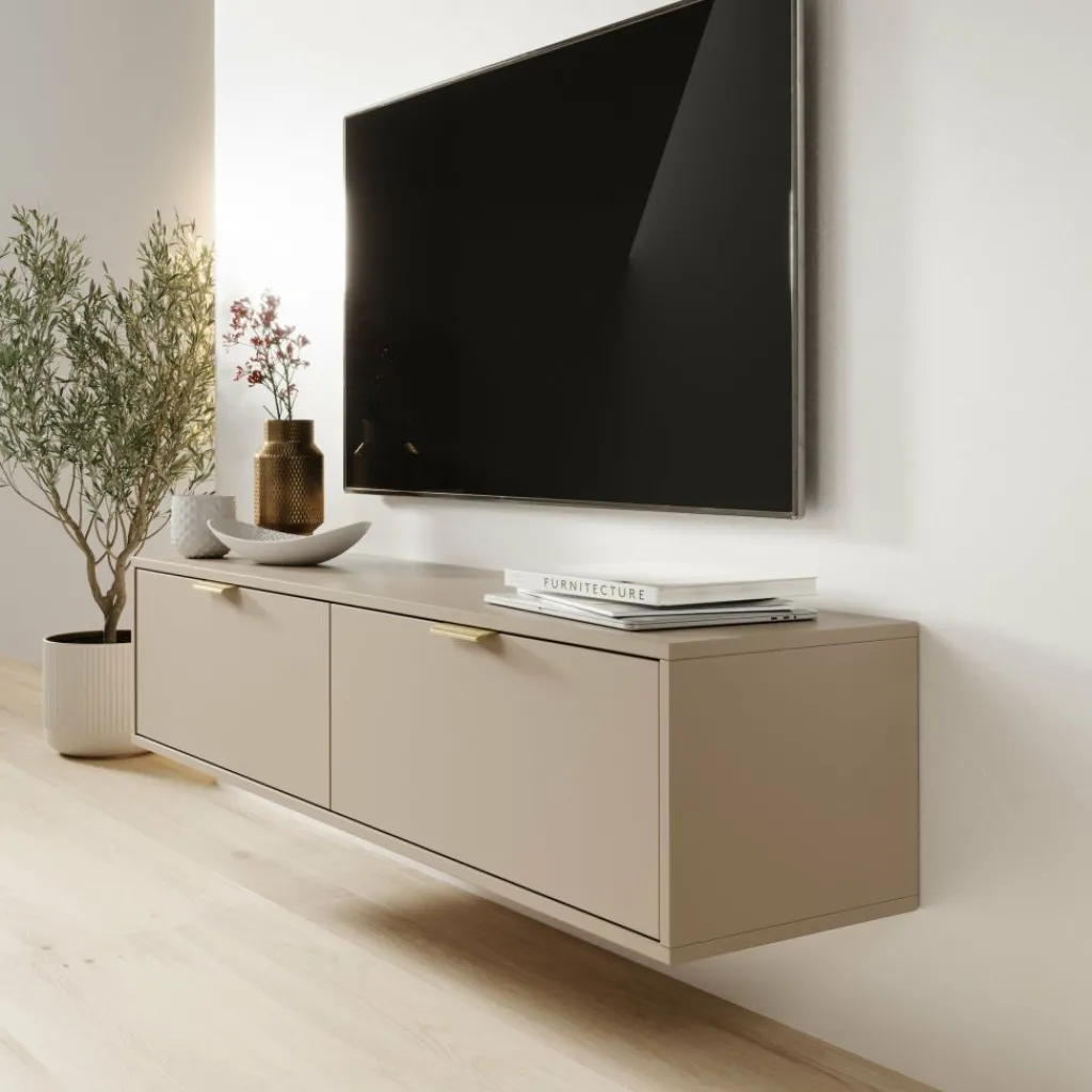 Dankzij de zwevende montage lijkt het meubel te zweven boven de vloer, wat bijdraagt aan een minimalistische en luchtige uitstraling. Dit maakt het niet alleen praktisch, maar ook een echte blikvanger in de woonkamer.