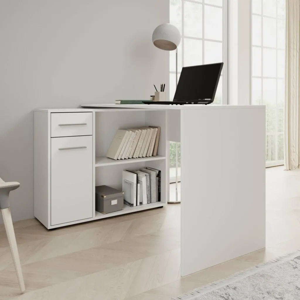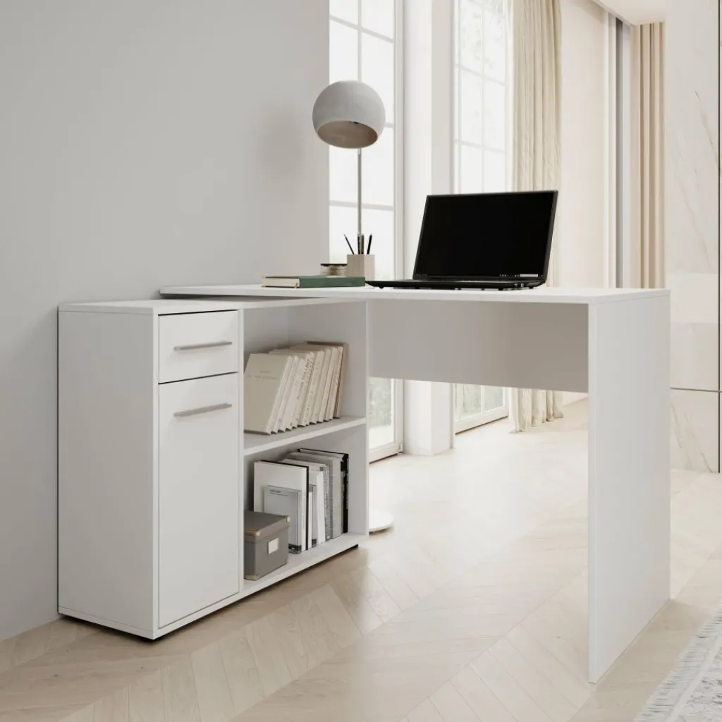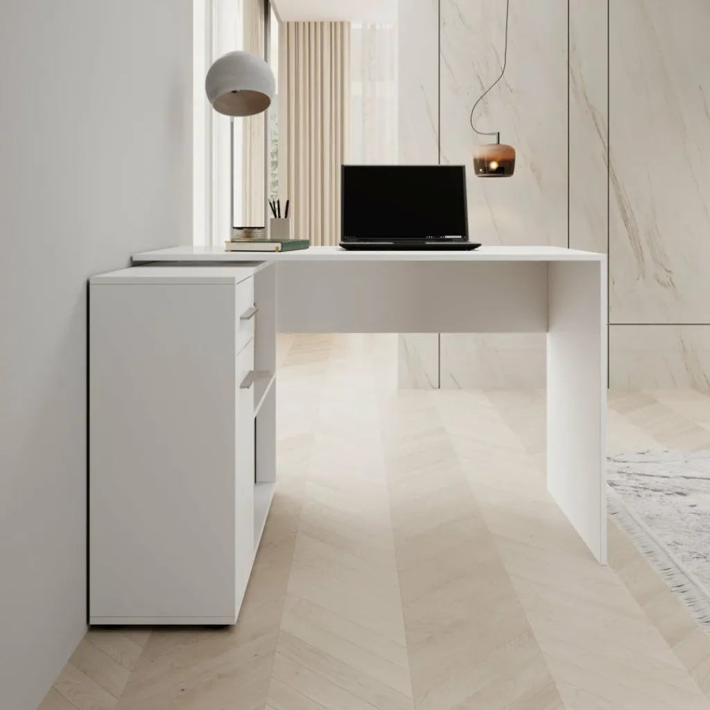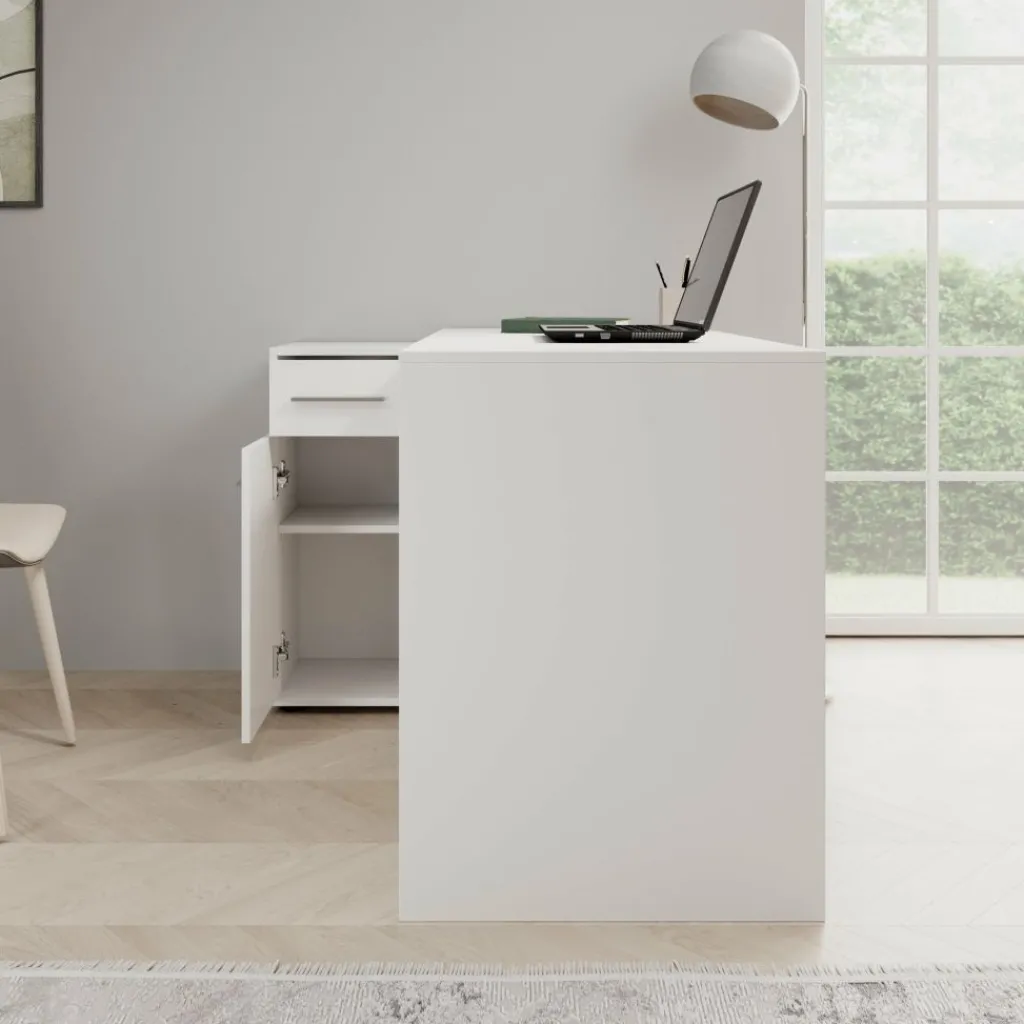 Het Silky-bureau is een praktische en stijlvolle werkplek voor thuis. Dankzij de strakke witte afwerking past het moeiteloos in een modern interieur. Het ontwerp combineert een ruim werkblad met slimme opbergruimte, zodat je je werkplek makkelijk georganiseerd houdt.